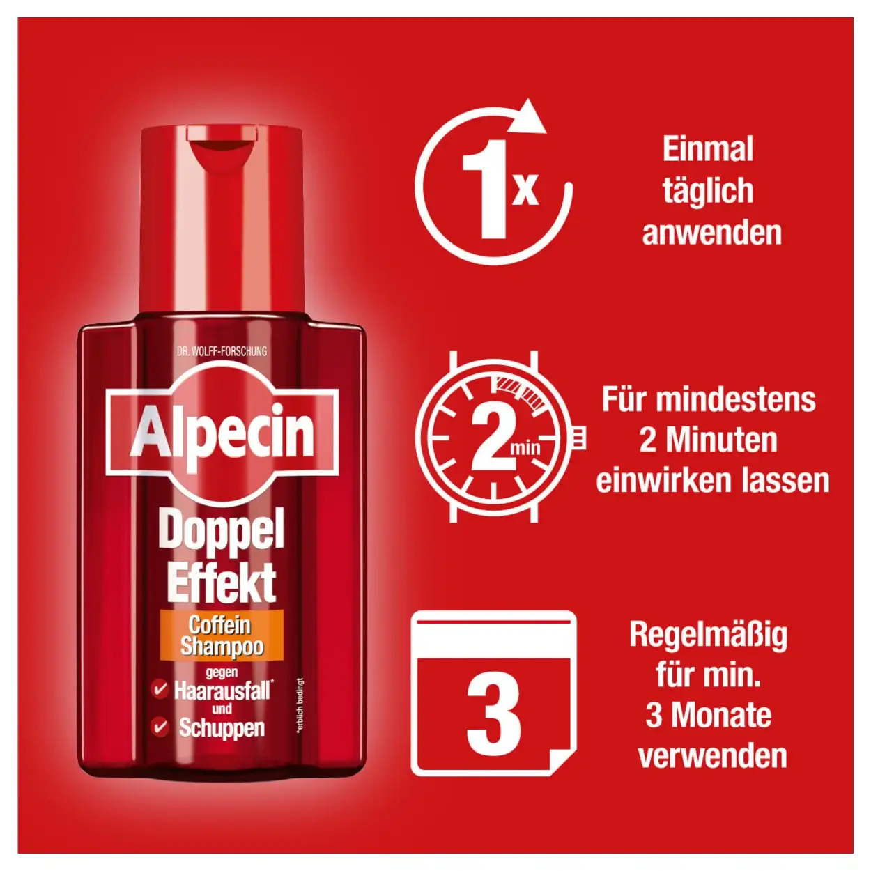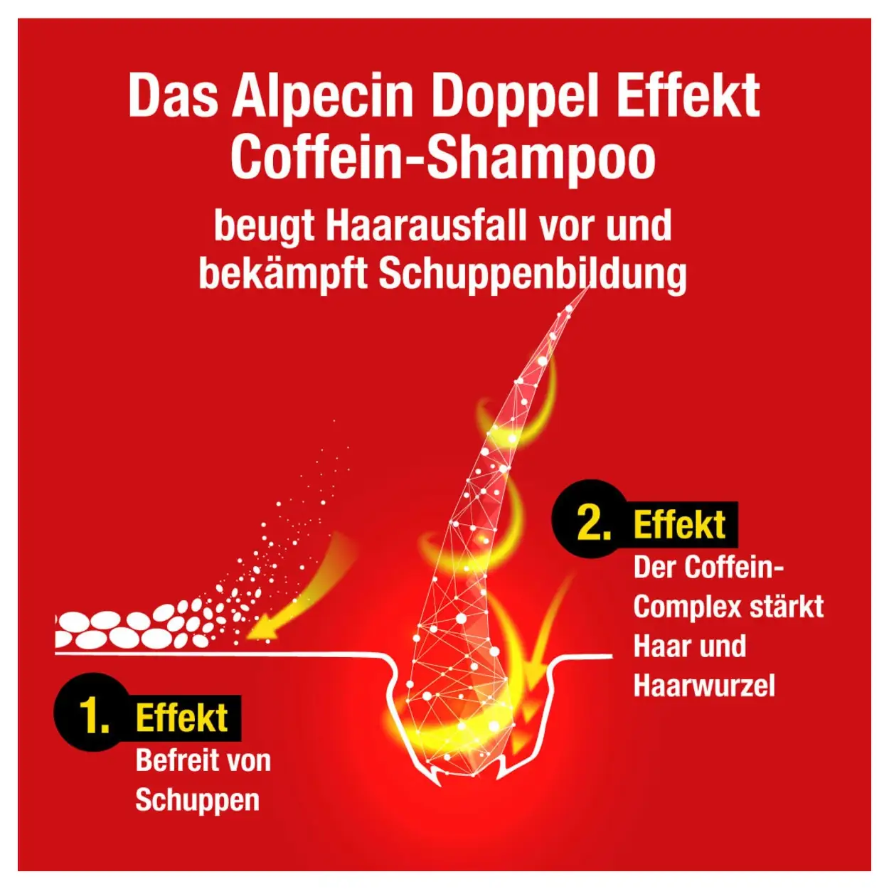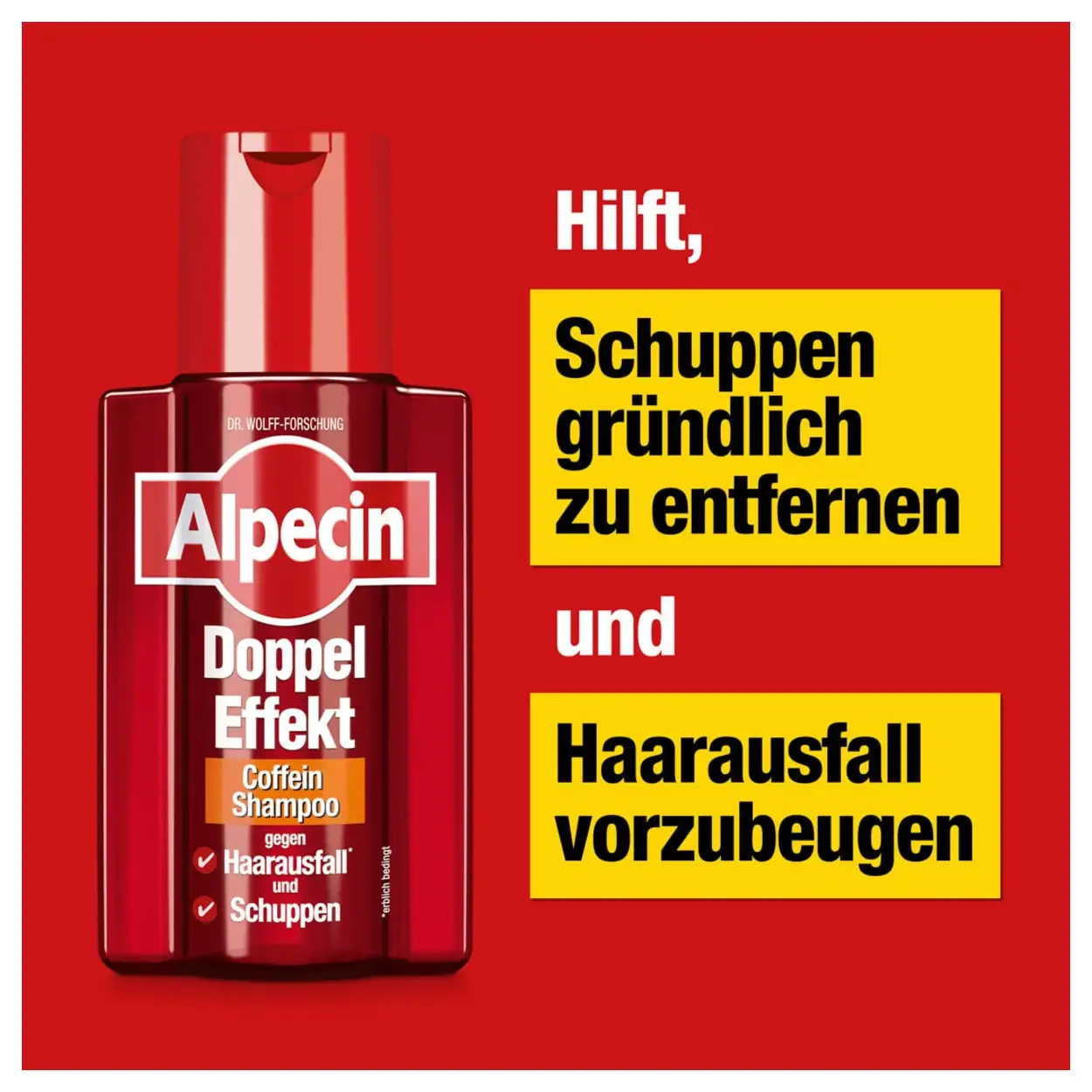 Pak roos en haaruitval tegelijk aan met Alpecin Dubbele Effect Shampoo. Voor een frisse hoofdhuid en zichtbaar sterker, voller haar.