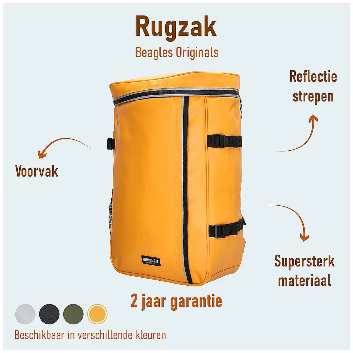 Ontdek de Beagles Originals Tokyo Rugzak 15.6 inch: waterdicht tarpaulin, laptopvak, antidiefstalvak en reflectie. Ideaal voor werk, reizen en elke dag!