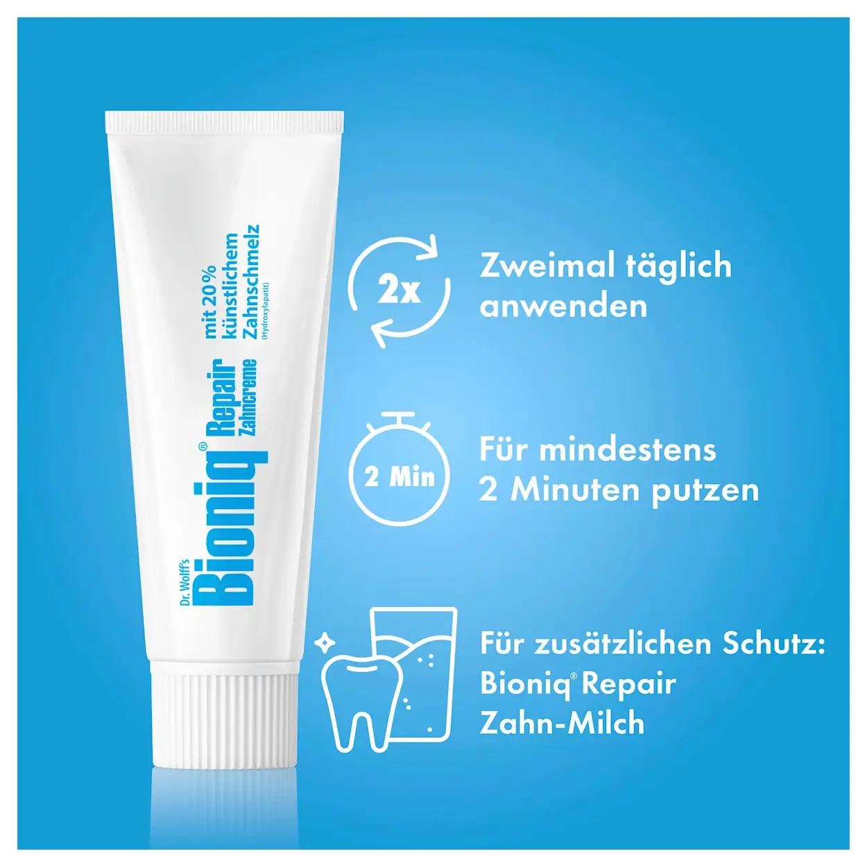 Dankzij het biomimetische principe, geïnspireerd door de natuur, imiteert Bioniq natuurlijk tandglazuur. Microscopisch kleine glazuurdefecten worden opgevuld en er vormt zich een beschermende toplaag op de tanden. Dit helpt tandbederf te voorkomen, vermindert pijngevoeligheid en beschermt tegen slijtage door zuren en bacteriën.