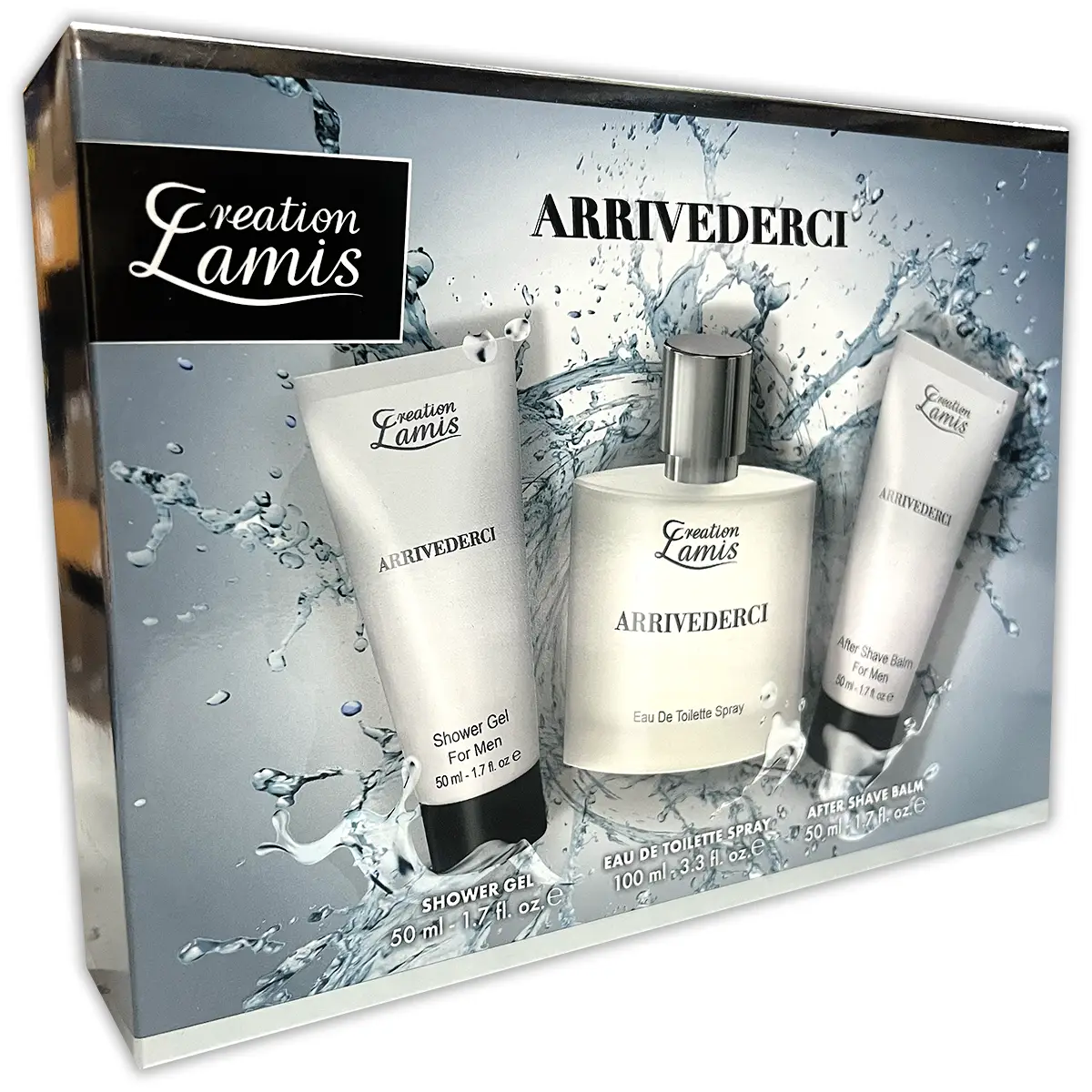Verfrissende giftset met eau de toilette, aftershave en douchegel. Creation Lamis Arrivederci for Him Giftset mediterrane geur voor de moderne, zelfverzekerde man.