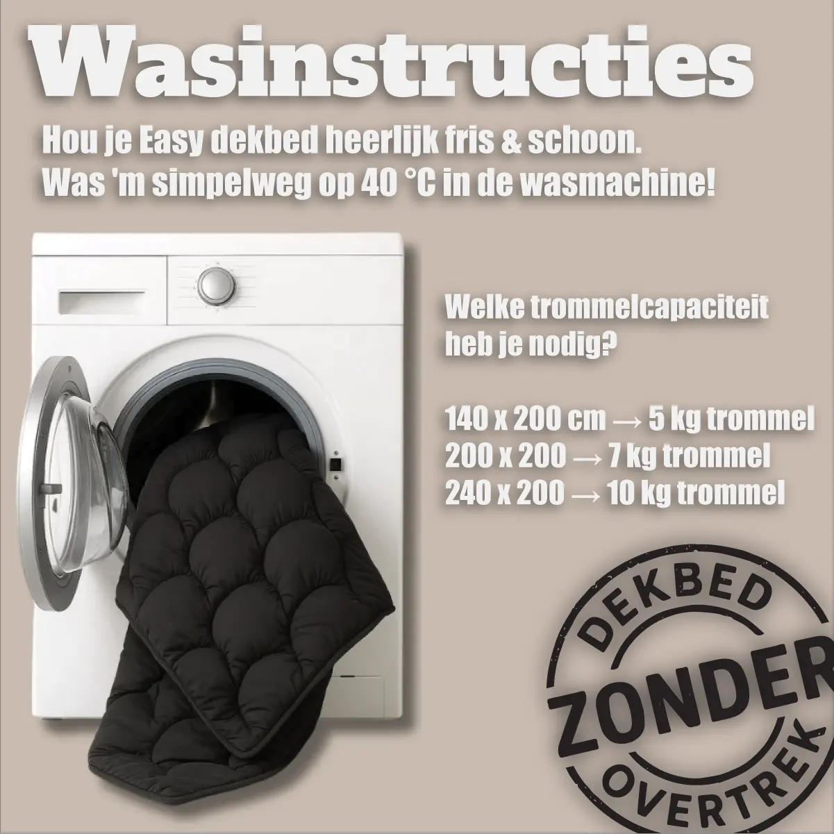 Luxe wasbaar dekbed zonder overtrek Black 240x200cm Superzacht, fris en onderhoudsvrij comfort. Ideaal voor elk seizoen en altijd direct klaar voor gebruik.