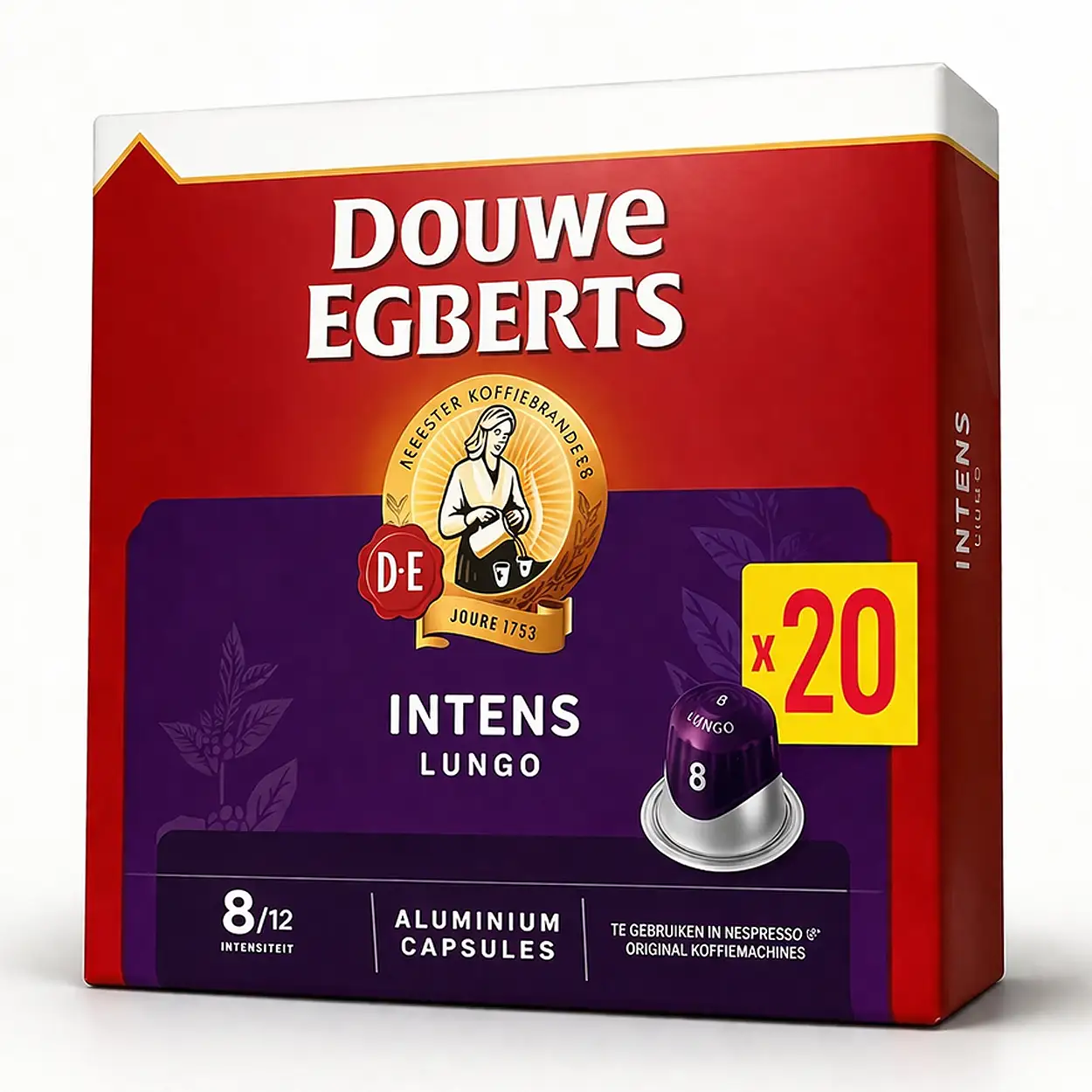 Douwe Egberts koffiecups Espresso Lungo 8 – voordeelpak 20 cups is een product dat bestaat uit 20 koffiecups van het merk Douwe Egberts. Deze cups zijn geschikt voor het zetten van Espresso Lungo koffie met een intensiteit van 8.