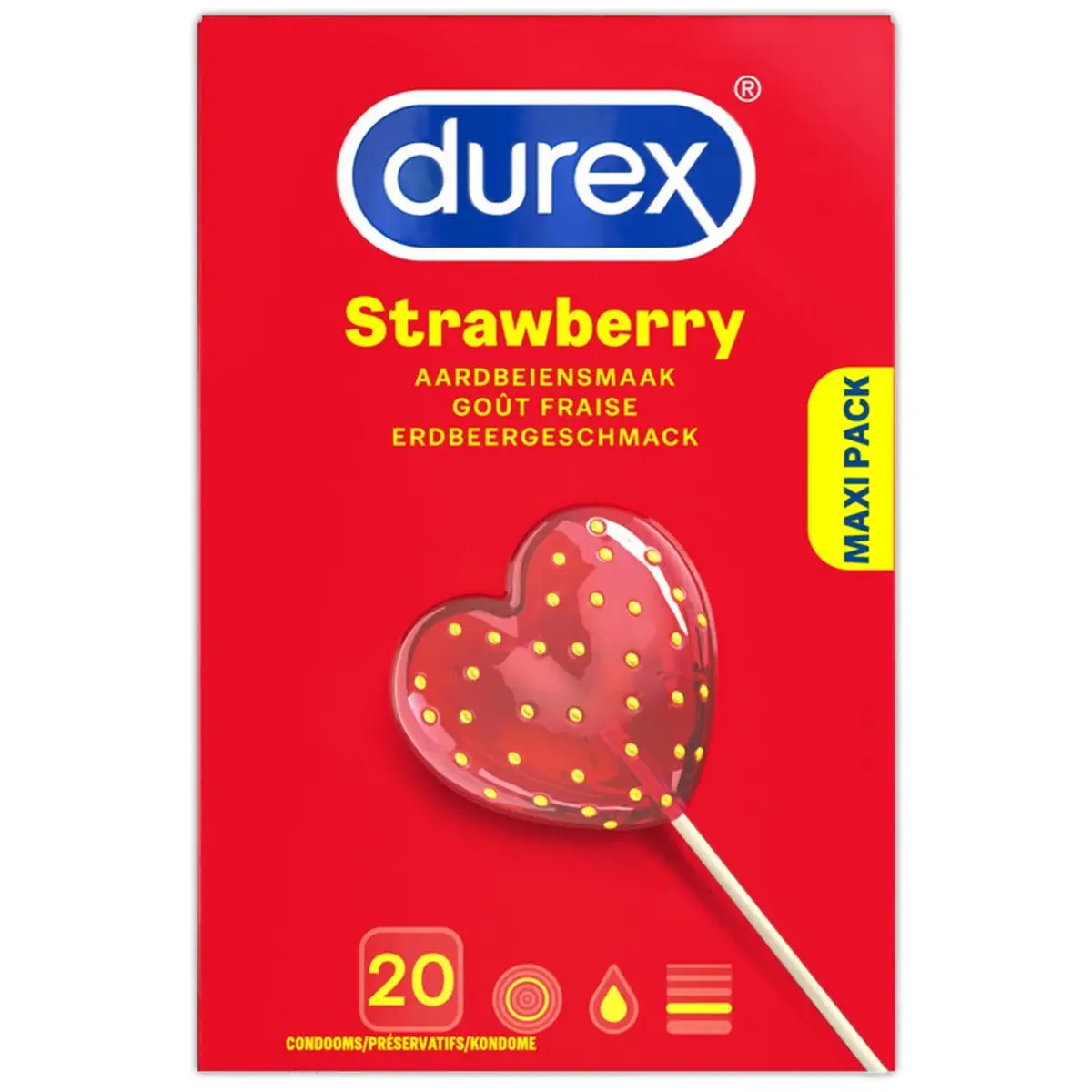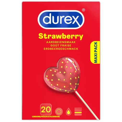 Ontdek Durex Condooms met Aardbeiensmaak: veilige bescherming met een zoete smaak en geur. Voor extra plezier tijdens elk intiem moment.