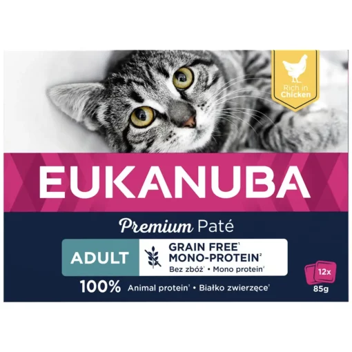 Eukanuba Graanvrije Kippen Paté voor volwassen katten 12x85gr Multipack