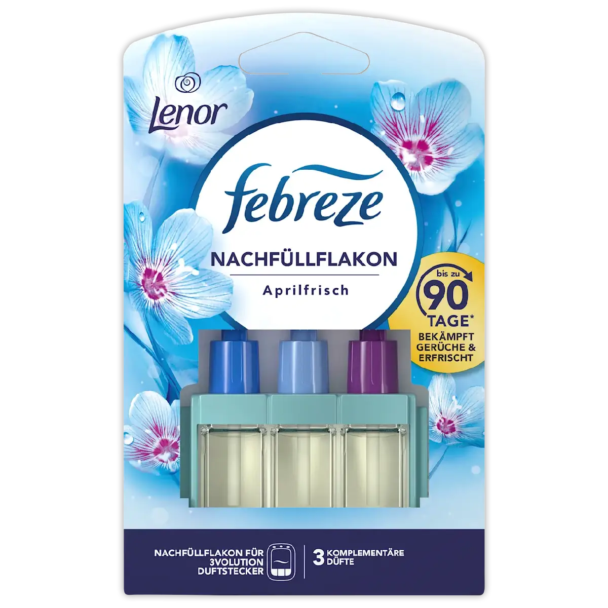 Geniet tot 90 dagen van frisse lentegeur met Febreze 3Volution Navulling April Fresh 20ml Navulverpakking. Wisselt slim tussen 3 geuren voor blijvende frisheid in huis