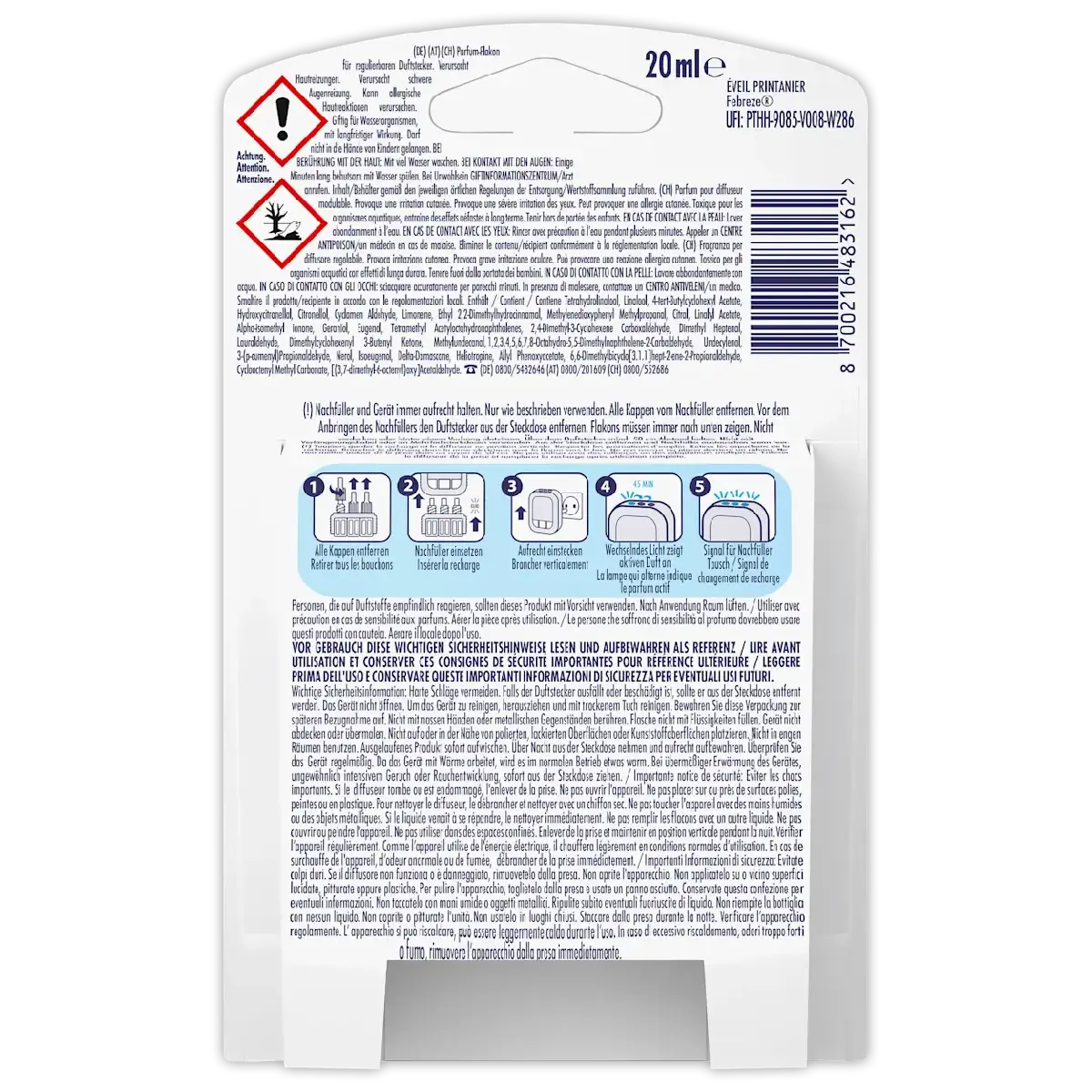 De Febreze 3Volution Navulling is ontworpen voor gemak. Verwijder simpelweg de doppen, plaats de navulling in het apparaat en laat de frisse geuren hun werk doen. Met zijn compacte en stijlvolle design past hij discreet in je interieur, terwijl hij krachtig werkt tegen ongewenste geuren.