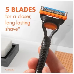 Ontdek het verschil van een Gillette Fusion5 Houderset met 11 navulmesjes – ontworpen voor een moeiteloos gladde scheerervaring. De combinatie van een ergonomische houder en vijf ultradunne antifrictiemesjes zorgt voor een perfect glad resultaat zonder trekken of irritatie. De extra brede Lubrastrip met verzorgende smeermiddelen laat het mesje soepel over de huid glijden, waardoor zelfs gevoelige zones comfortabel worden geschoren.
