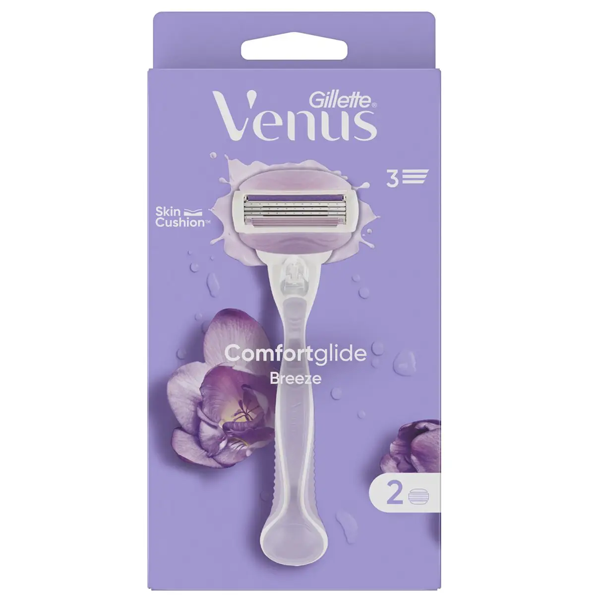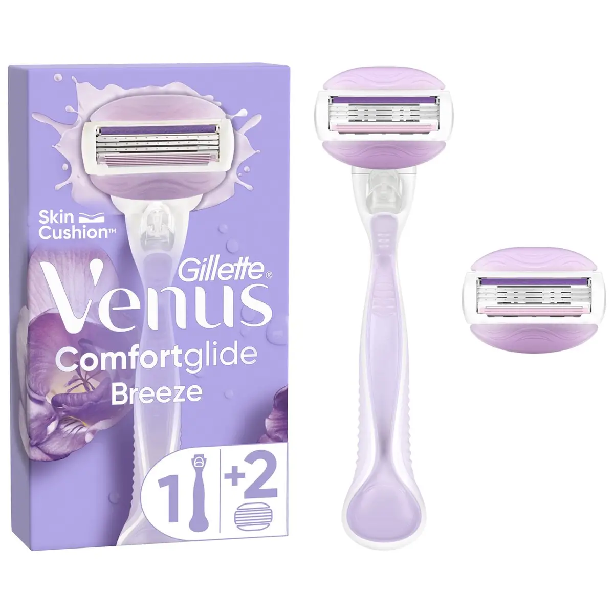 Ervaar een gladde en verzorgde huid met Gillette Venus Comfortglide Breeze Houder met 2 mesjes. Met gelkussens en duurzame grip. Voor vrouwen die willen stralen!