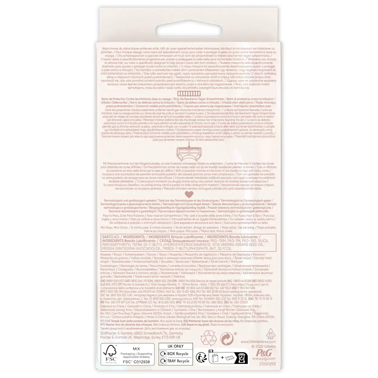Gillette Venus Intiem Scheermes voor Vrouwen met huidbeschermend element en precisietrimmer. Ontworpen voor een comfortabele, effectieve en irritatiearme scheerbeurt.