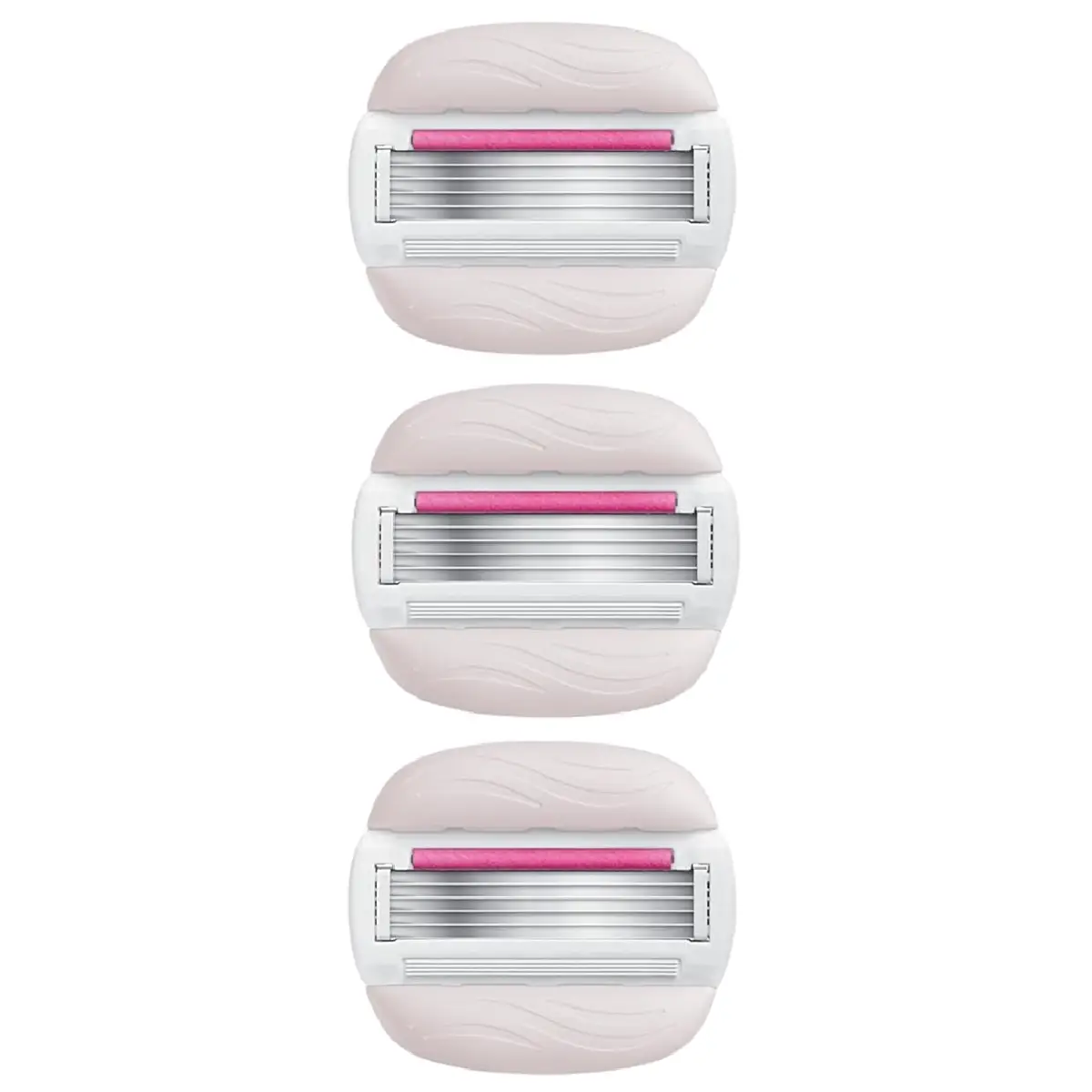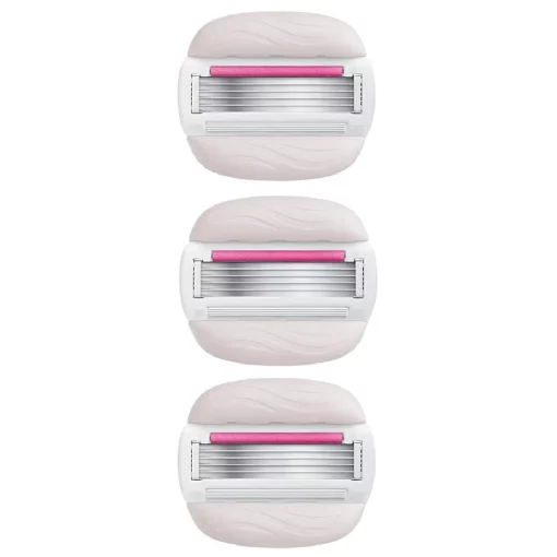 De Gillette Venus Pro ComfortGlide Pomegranate Scented 3-Pack scheermesjes zorgen voor een zijdezachte huid in slechts één beweging. Dankzij de 5 vlijmscherpe mesjes en de flexibele scheerkop glijdt het mesje moeiteloos over de huid, zelfs over de lastigste plekjes. Dit scheermes is speciaal ontworpen voor de droge huid en geeft je een langdurig glad resultaat zonder irritatie. De geurige SkinCushion-lubricatiestrip met granaatappel verspreidt een subtiele tropische geur tijdens het scheren – alsof je jezelf op een mini-spa-moment trakteert.