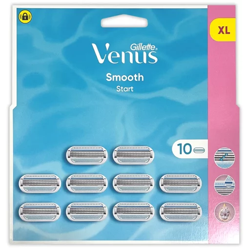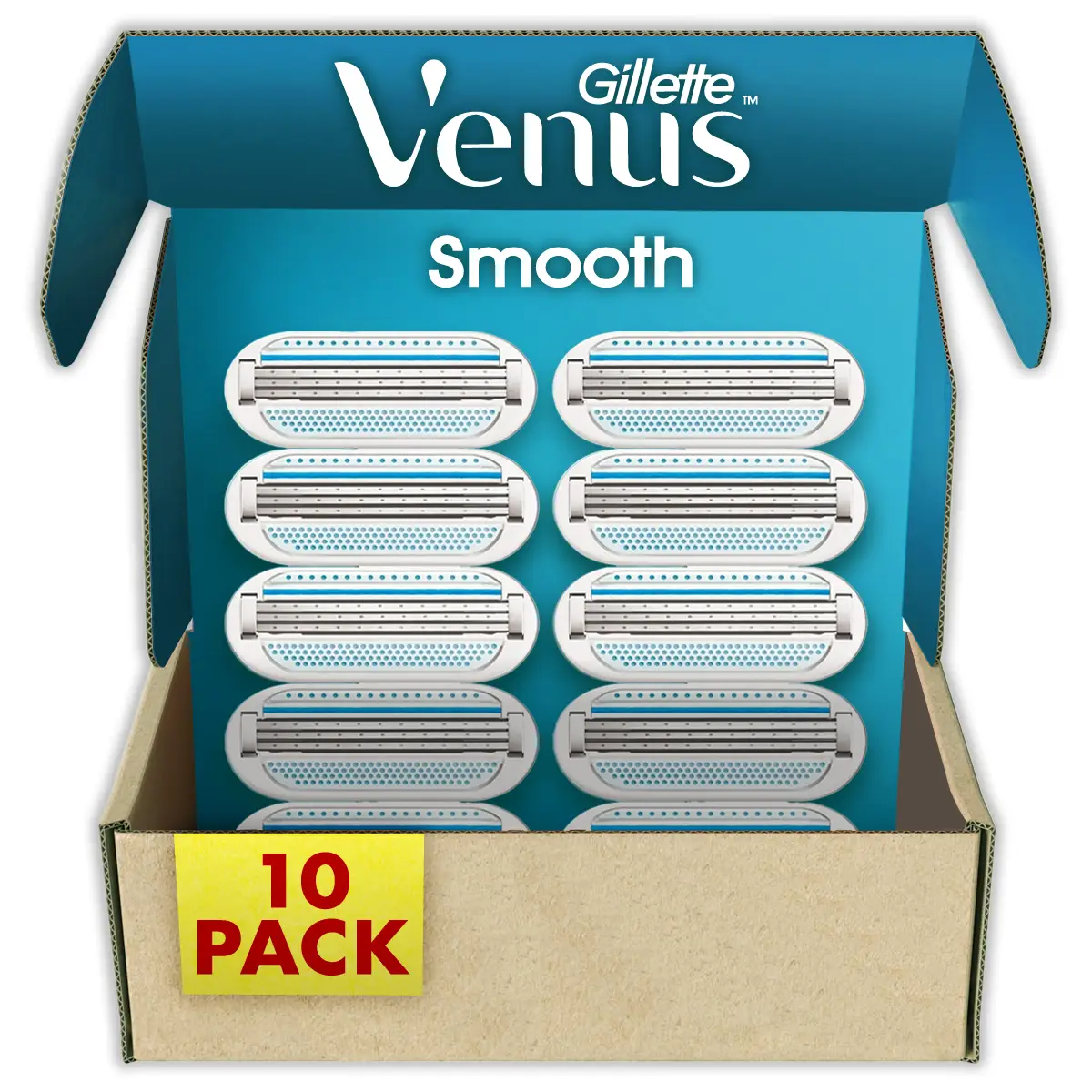 Ervaar gladheid en comfort met Gillette Venus Smooth navulmesjes 10-Pack. 3 mesjes, Recyclebare verpakking. Voor een zijdezachte huid.