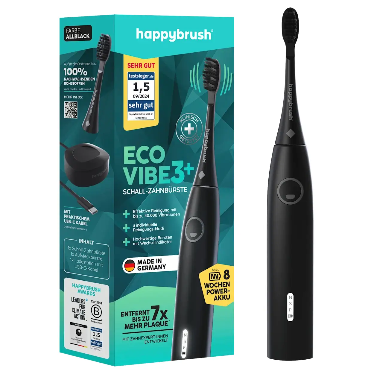 Ervaar zachte kracht met de HappyBrush Eco Vibe 3+ van happybrush. Sonische reiniging, 3 modi, slimme timer en tot 6 weken batterijduur. Voor stralende tanden!