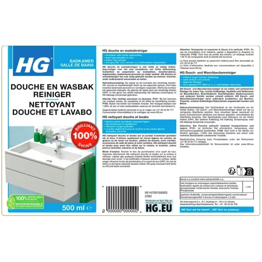 Heb je weinig tijd? Geen probleem! HG Douche en Wasbak Spray maakt het schoonmaken van je douche, wasbak of tegelwand een fluitje van een cent. Je sprayt het gewoon op het oppervlak, laat het kort inwerken en spoelt het af. Het resultaat? Een stralend schone badkamer die er niet alleen fris uitziet, maar ook hygiënisch schoon aanvoelt. Of je nu een snelle opfrisbeurt nodig hebt of je badkamer grondig wilt reinigen, deze spray is altijd de juiste keuze.