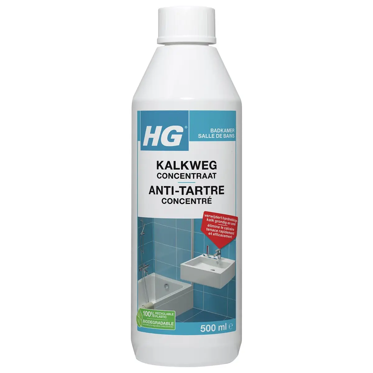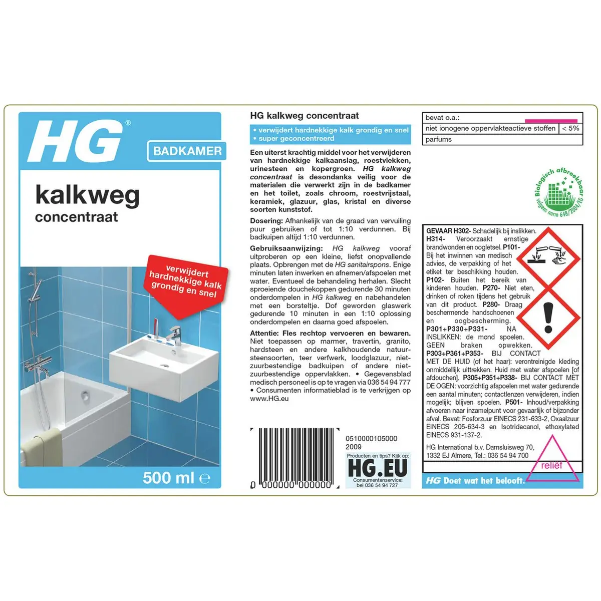 Verwijdert moeiteloos kalkaanslag, roest en urinesteen. HG Kalkweg Concentraat is veilig voor chroom, RVS, keramiek en glas. Professioneel resultaat!