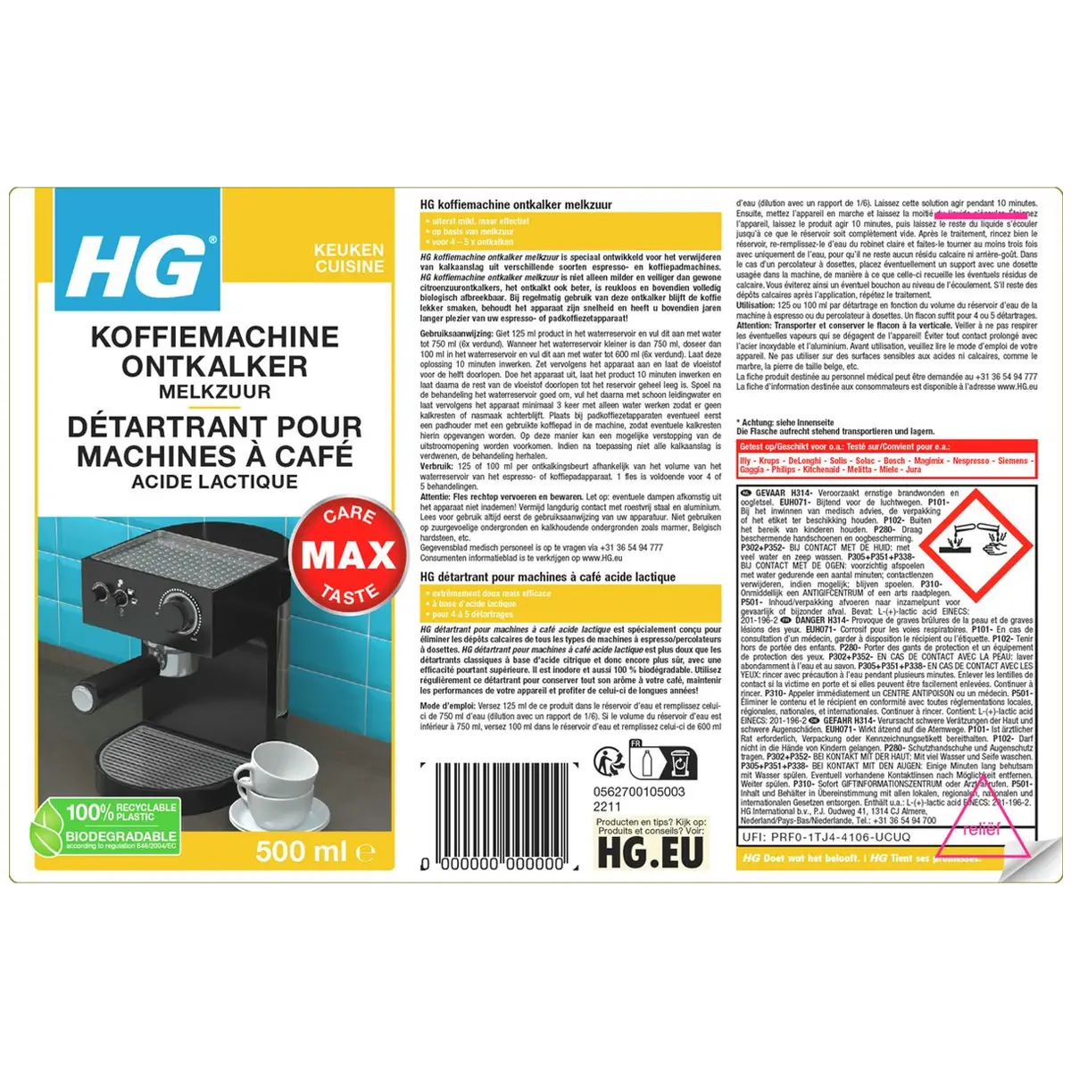 HG koffiemachine ontkalker melkzuur 500ml Snel & veilig ontkalken