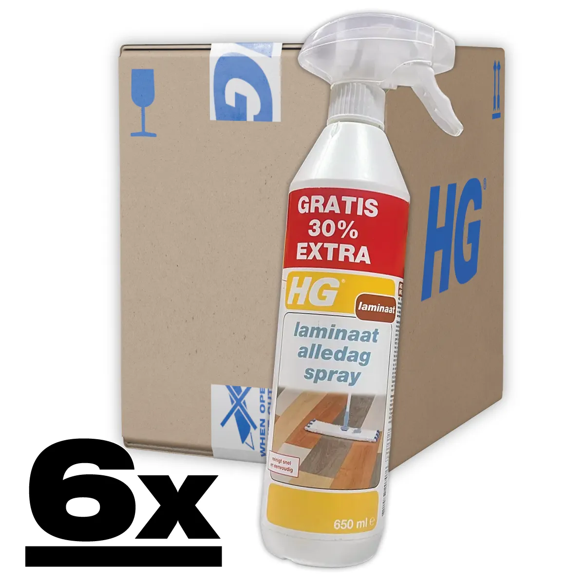 HG Laminaat Alledag Spray verwijdert stof en vuil moeiteloos. Veilig voor alle laminaatvloeren, fris geurend en streeploos schoon. 6x650ml voordeelverpakking.