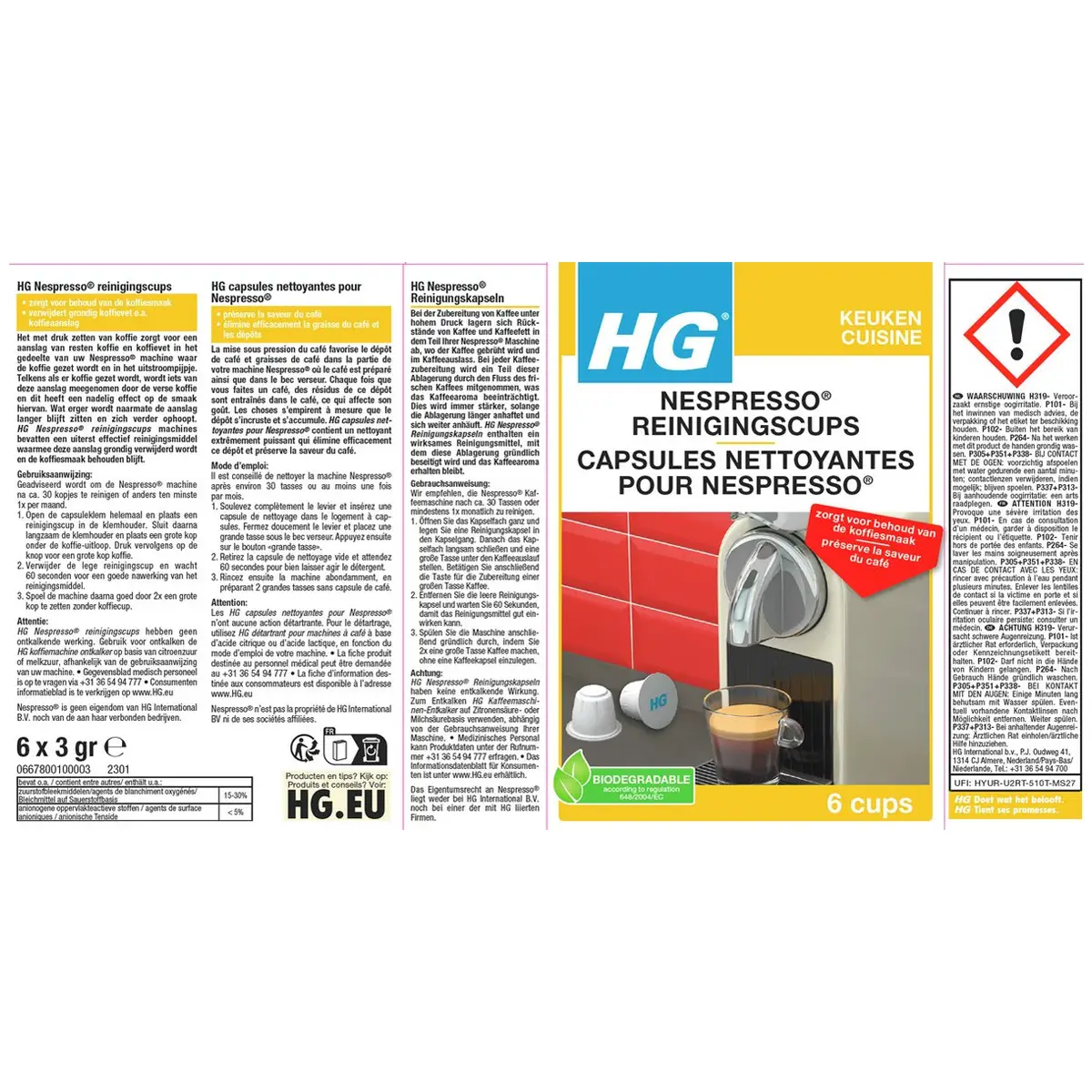Waarom wachten tot je machine haperingen vertoont of je koffie bitter smaakt? Door te reinigen met HG zorg je voor een langere levensduur van je apparaat én een constante koffiekwaliteit. De cups zijn geschikt voor alle Nespresso® machines en vormen dé oplossing voor een veelvoorkomend probleem. HG staat bekend om effectieve producten met een gerichte werking – deze reinigingscups zijn daar hét bewijs van. Maak van onderhoud een gewoonte en geniet zonder zorgen van elk kopje koffie.