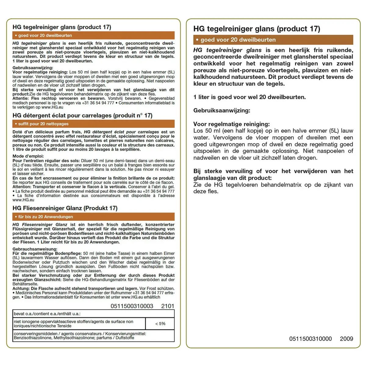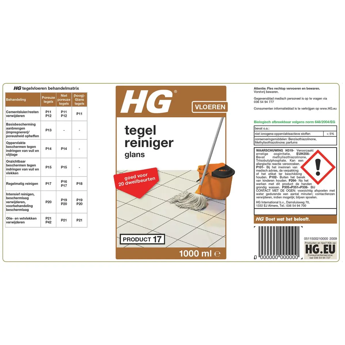 Fris ruikende, geconcentreerde tegelreiniger met glansherstel. HG Tegelreiniger Glans voor glanzende, schone vloeren – tegels, plavuizen en natuursteen in topconditie!