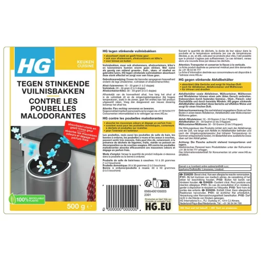 Niemand wordt blij van een nare geur uit de vuilnisbak. Gelukkig is daar HG Tegen Stinkende Vuilnisbakken – de held van elk huishouden! Deze slimme geurabsorberende korrels neutraliseren de échte oorzaak van de stank, in plaats van die te verdoezelen.