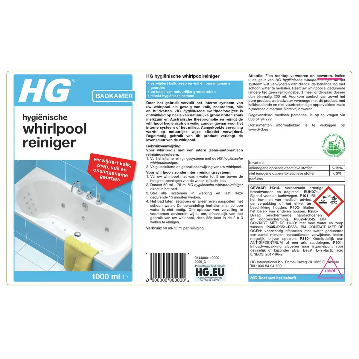 HG Whirlpool Reiniger 1 Liter Veilig, Hygiënisch en Natuurlijk