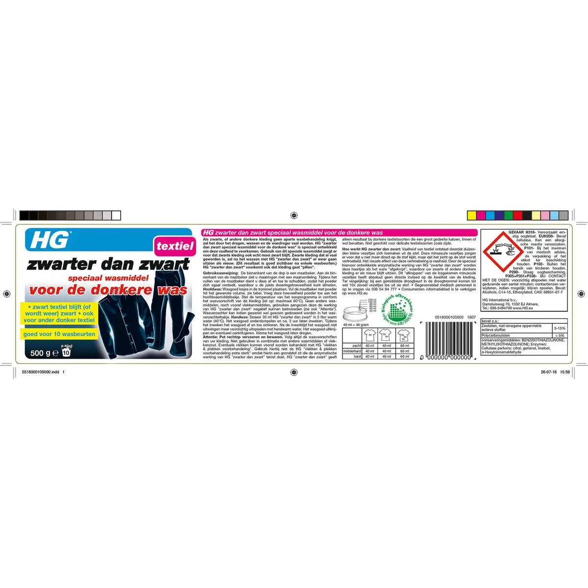 HG Zwarter dan Zwart Wasmiddel 500g Voor Diep Zwarte Kleding