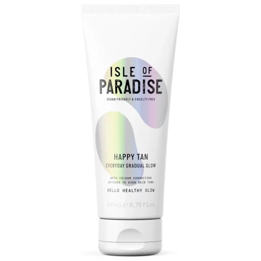 Ontdek de Isle of Paradise Happy Tan 200ml: hydrateert én geeft je huid geleidelijk een natuurlijke, vegan glow. Zonder vlekken of stress.