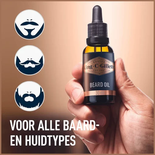 Je baard is jouw visitekaartje. De King C Gillette Baardolie 30ml tilt je baardverzorging naar een nieuw niveau. Of je nu een korte stoppelbaard hebt of een volle, koninklijke baard – deze olie verzacht, voedt en hydrateert tot in de puntjes.