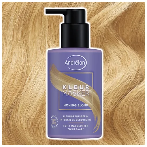 Verwen je gekleurde blond haar met de intensieve verzorging van het Andrélon Kleurmasker Honing Blond. Geniet van een langdurige kleur en gezond uitziend haar!