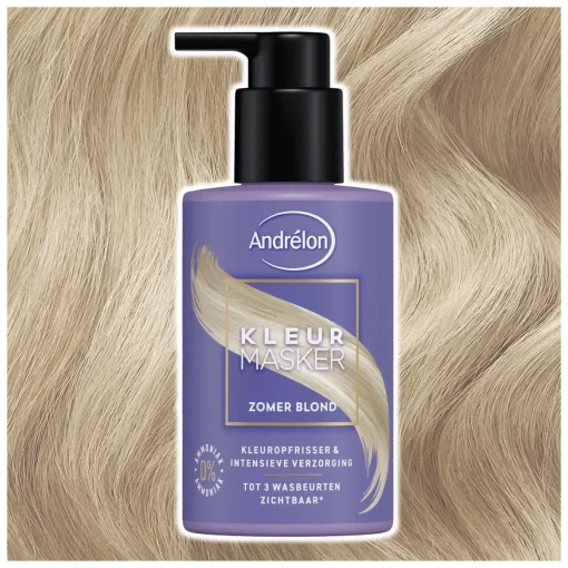 Verwen je gekleurde blond haar met de intensieve verzorging van het Andrélon Kleurmasker Zomer Blond. Geniet van een langdurige kleur en gezond uitziend haar!
