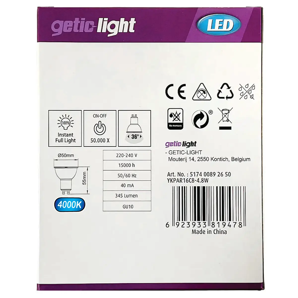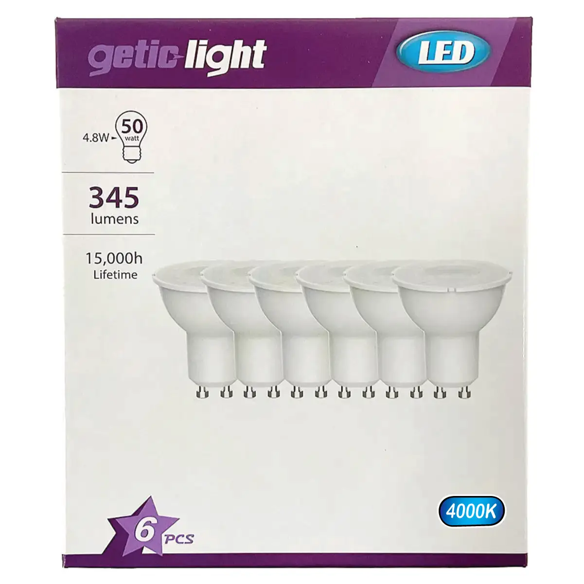 Breng warmte en sfeer in elke ruimte met de Getic Light LED-spots GU10 Cool Wit. Deze set van zes LED-lampen biedt warm wit licht (4000K), ideaal voor het creëren van een gezellige ambiance. Met een vermogen van slechts 4,8W per spot bereik je de helderheid van een traditionele 50W-lamp. Perfect voor gerichte verlichting in woonkamers, keukens of slaapkamers.