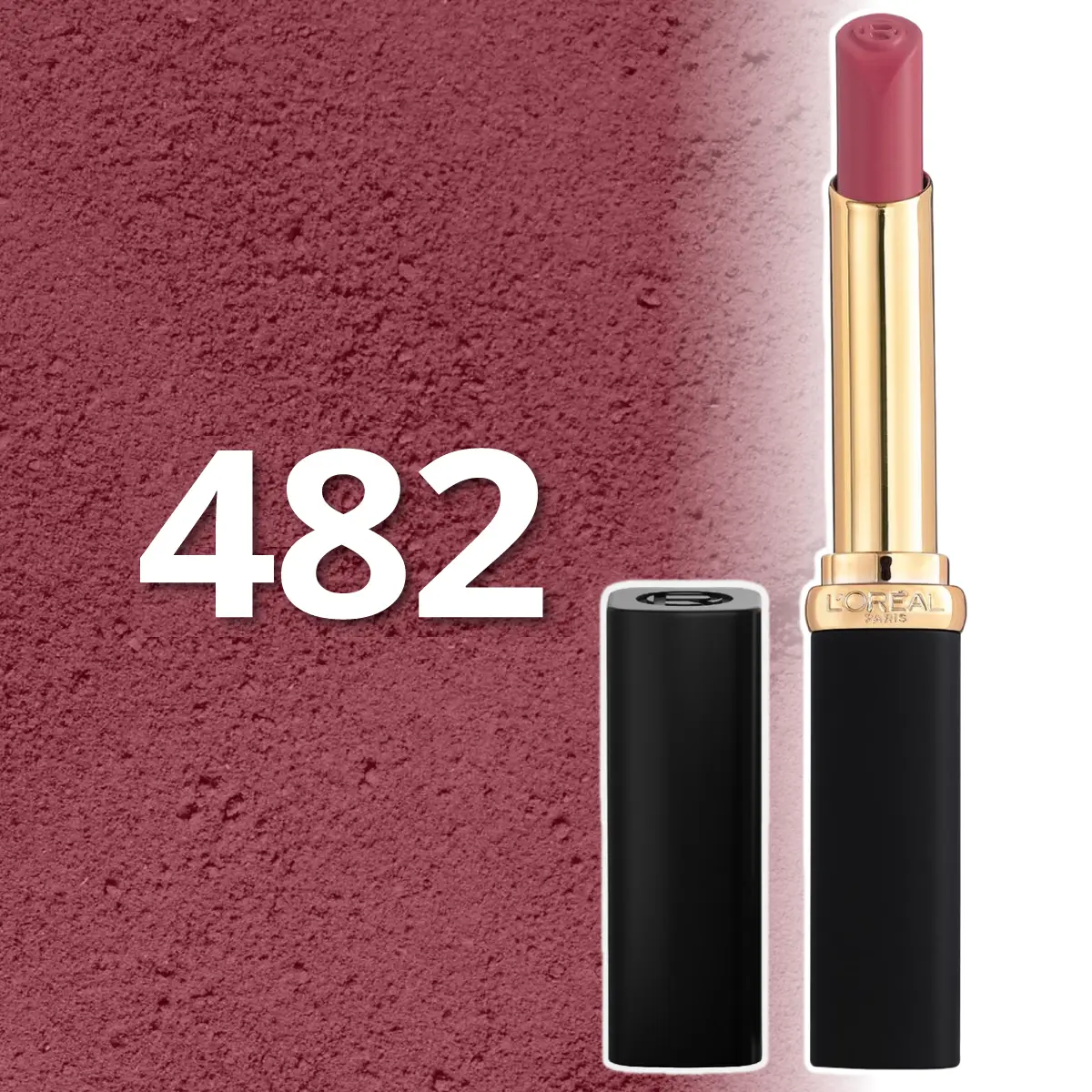 Ervaar de kracht van L’Oréal Paris Color Riche Intense Volume Matte 482 Le Mauve Indomptable: 16u kleur, volume door hyaluronzuur & verzorging met arganolie – voor lippen die spreken.