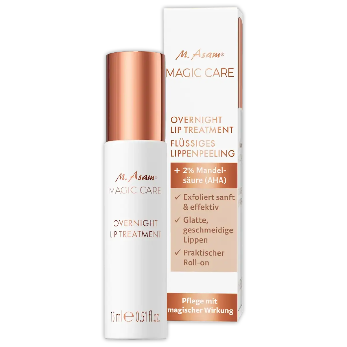 Word wakker met zachte, gladde en onweerstaanbare lippen dankzij de M.Asam Magic Care Overnight Lip Treatment. Deze vloeibare lip peeling met 2% amandelzuur (AHA) verwijdert op milde wijze dode huidcellen terwijl je slaapt. De verzorgende formule werkt diep in op de lippen en maakt ze soepel, gehydrateerd en pluisvrij. Geen gebarsten lippen meer – alleen een stralende glimlach bij het ontwaken.