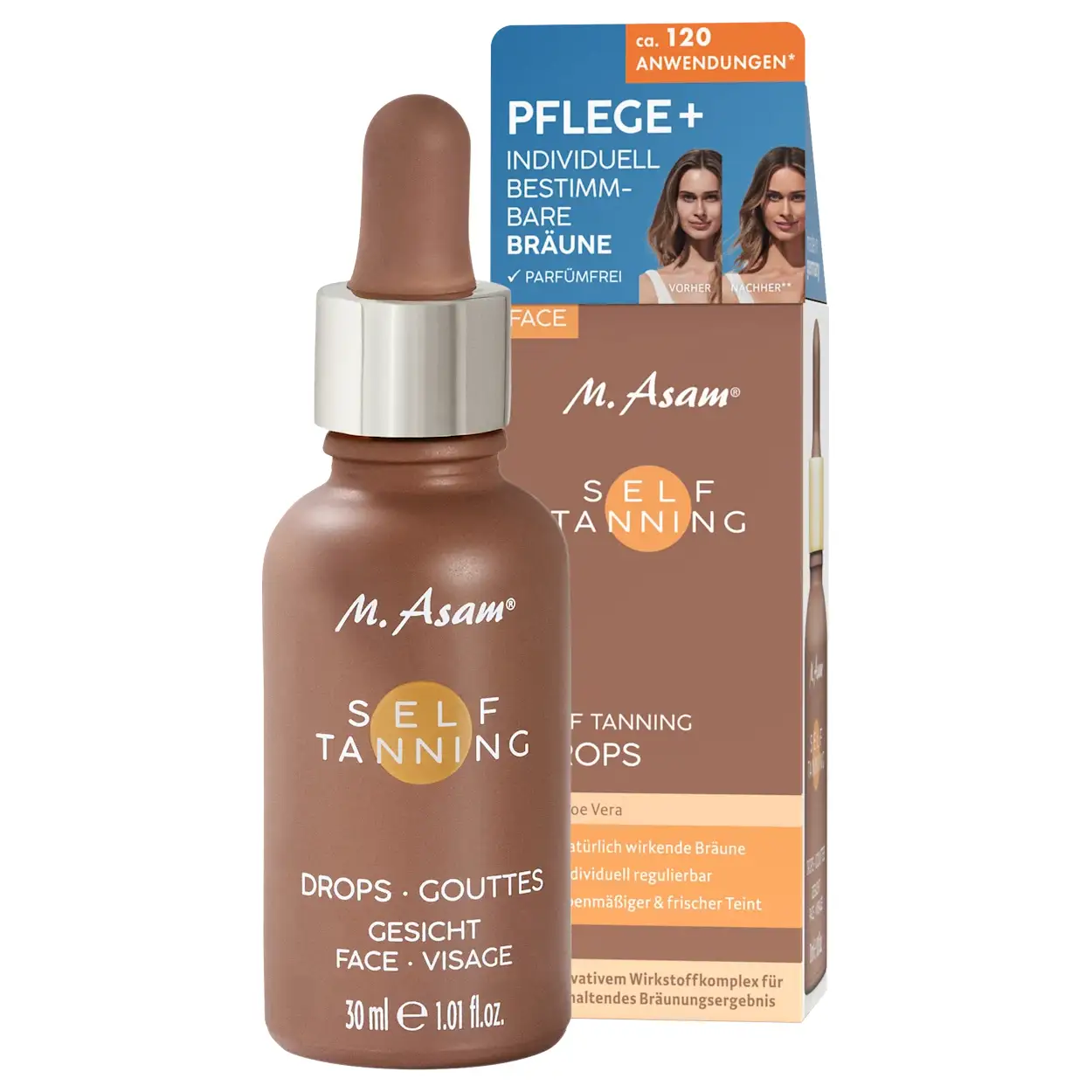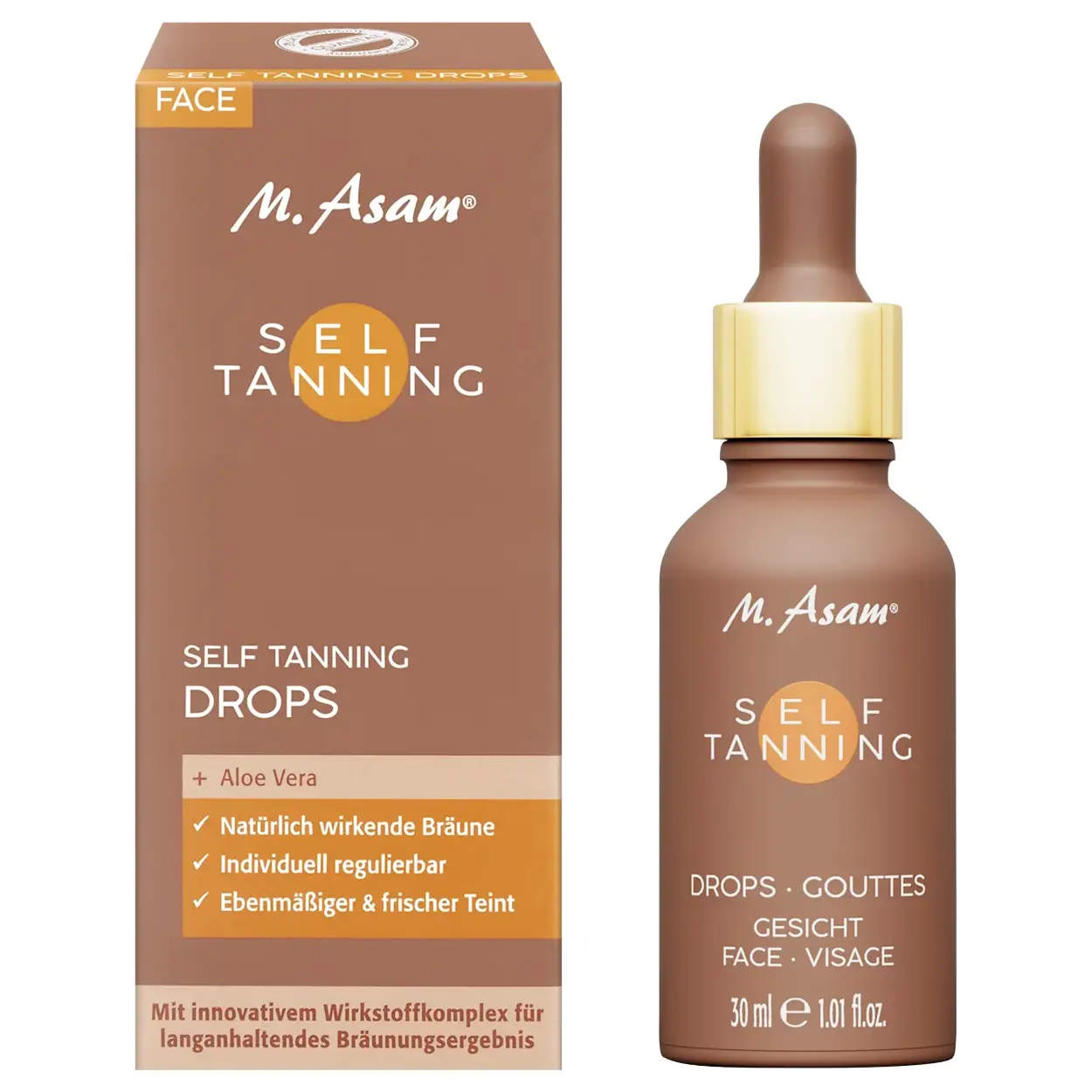 Krijg een natuurlijke, egale bruine teint met M.Asam Self Tanning Drops 30ml. Hydraterend, streeploos, waterbestendig en resultaat al na enkele uren. Bestel nu!