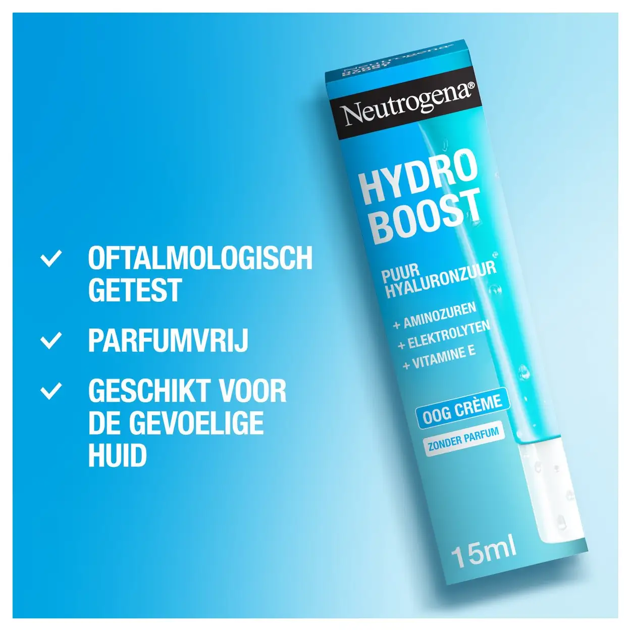 Hydrateer je oogcontour intensief met Neutrogena Hydro Boost oogcrème gel. Vermindert wallen en donkere kringen zichtbaar binnen 3 weken.
