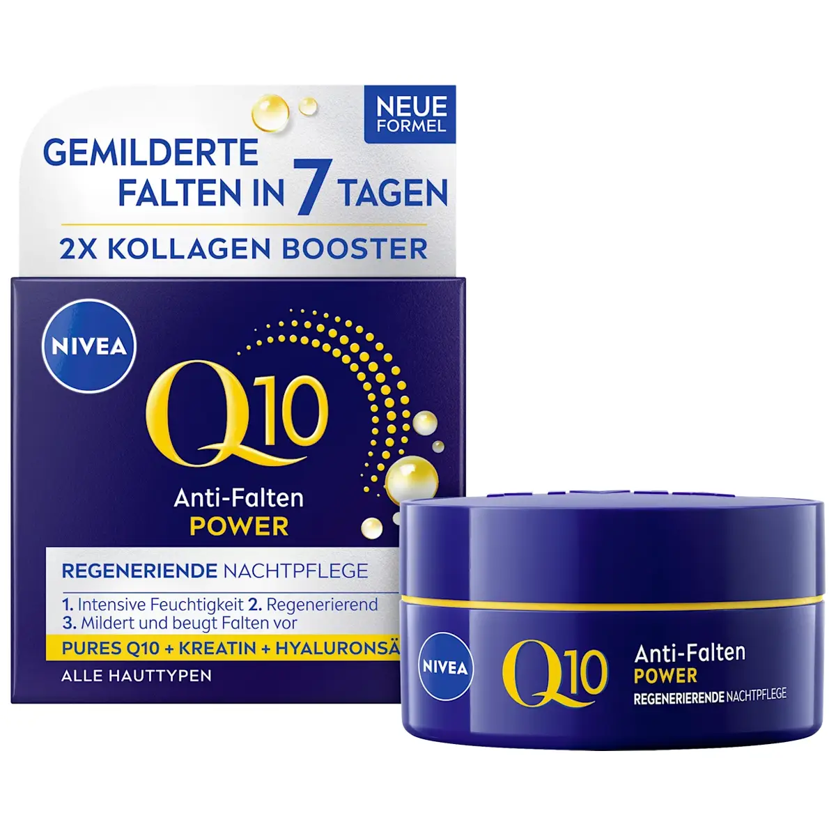 Ontdek de Nivea Q10 Power Anti-Rimpel Nachtcrème met dubbele collageenbooster. Vermindert rimpels in 7 dagen en maakt de huid glad en stevig.