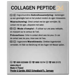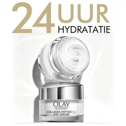 De Olay Regenerist Collagen Peptide24 Oogcrème is een parfumvrije oogcrème met een inhoud van 15 ml. Het product bevat collageenpeptiden die helpen bij het verminderen van fijne lijntjes en rimpels rondom de ogen. Het is speciaal ontworpen om de huid te hydrateren en te verstevigen, waardoor de oogcontour er jonger en stralender uitziet.