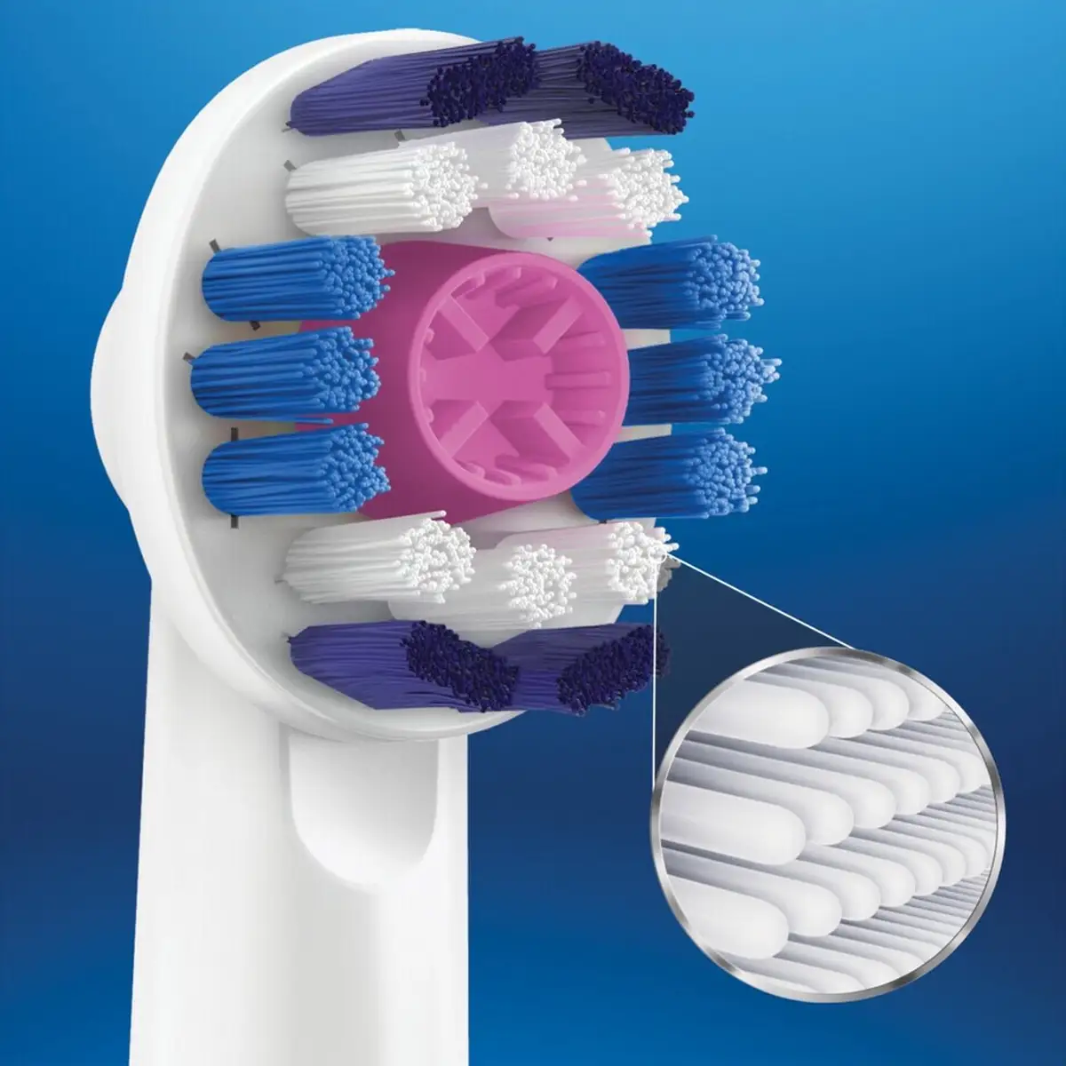 Ontwikkeld in samenwerking met tandartsen, zijn deze opzetborstels ontworpen om je poetservaring naar een hoger niveau te tillen. Met zorgvuldig afgeronde borstelharen en strenge kwaliteitscontroles profiteer je van maximale prestaties zonder irritatie. Of je nu last hebt van verkleuringen, tandplak of gewoon wilt genieten van een frisse mond: de Oral-B 3D White opzetborstels zijn de perfecte keuze voor een gezond en stralend gebit.
