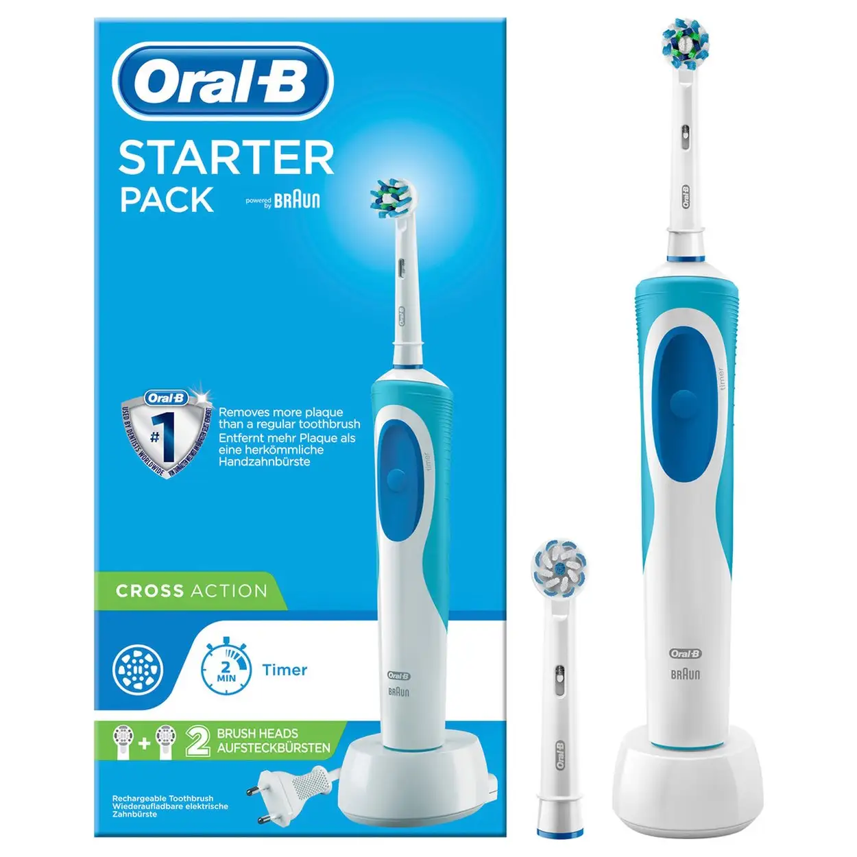 Ontdek het Oral-B Vitality Starterpack: zachte maar diepe reiniging, timer, sterke batterij en extra opzetborstel. Voor elke dag een stralende glimlach!