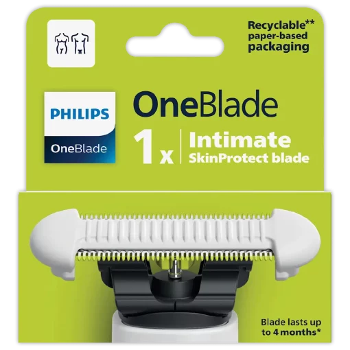 De OneBlade Intimate is niet alleen zacht en krachtig, maar ook verrassend duurzaam. Je hoeft het mesje slechts om de vier maanden te vervangen, wat zorgt voor langdurige prestaties én gemak.