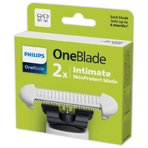 Ervaar comfortabel intiem scheren met de Philips OneBlade Intimate Vervangmesjes 2x. Veilig voor hem & haar, met extra bescherming tegen sneetjes en huidirritatie.
