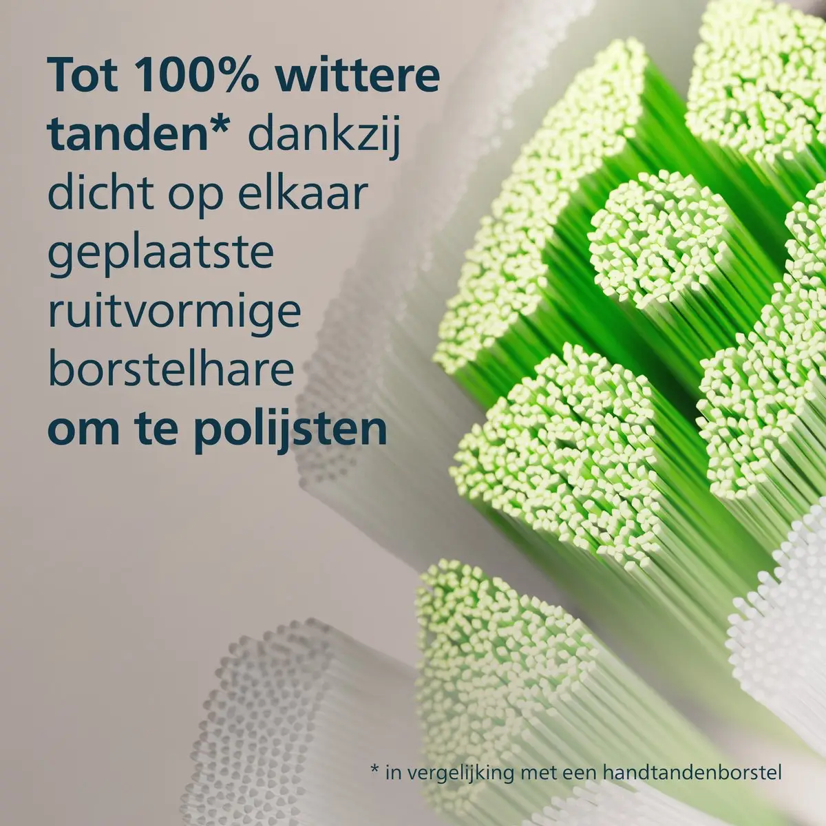 Laat vlekken en verkleuringen geen kans met de Philips Sonicare W2 Optimal White 4-Pack zwarte opzetborstels. Dankzij de ruitvormige borstelharen verwijder je tot wel 7 keer meer tandplak dan met een gewone handtandenborstel. Binnen een week zie je al zichtbaar verschil: een wittere, gezondere glimlach. Ideaal voor wie zijn tanden wil opfrissen tussen professionele bleekbehandelingen door.