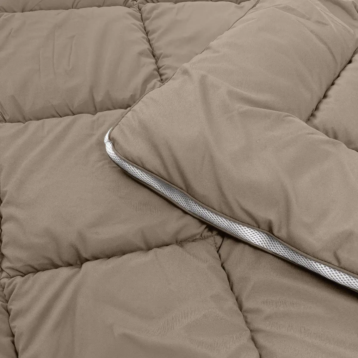 Ontdek het Royalbed 3D AIR Touch of Taupe 140x200cm en ervaar het gemak van slapen zonder overtrek. Dankzij de vaste hoes en lichtgewicht microvezelvulling geniet je het hele jaar door van een comfortabele nachtrust. De 3D-meshventilatie zorgt ervoor dat warmte en vocht razendsnel worden afgevoerd, zodat jij koel, droog en fris blijft slapen.