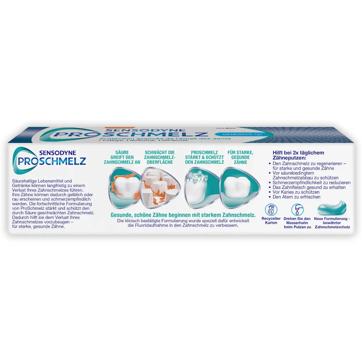 Bescherm gevoelige tanden met Sensodyne ProSchmelz Tandvlees tandpasta. Versterkt glazuur, helpt tegen zuren en zorgt voor een frisse adem.