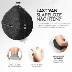 Slaap beter en word uitgerust wakker met het Swiss Nights Kniekussen Ergonomisch Anthracite. Dit slimme kussen is speciaal ontwikkeld om de juiste ondersteuning te bieden aan je knieën, benen en bekken. Het helpt drukpunten te verminderen, verbetert je slaaphouding en kan klachten zoals rugpijn, heupklachten, bekkeninstabiliteit en knieproblemen verlichten. Perfect voor zijslapers én rugslapers die optimaal slaapcomfort willen ervaren.