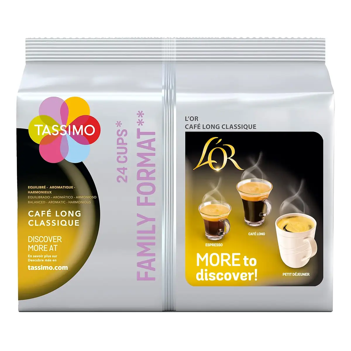 Ontdek Tassimo L’OR Café Long Classique. Donker gebrand, aromatisch en perfect in balans. 120 recyclebare koffiepods voor een rijke lungo met crema.