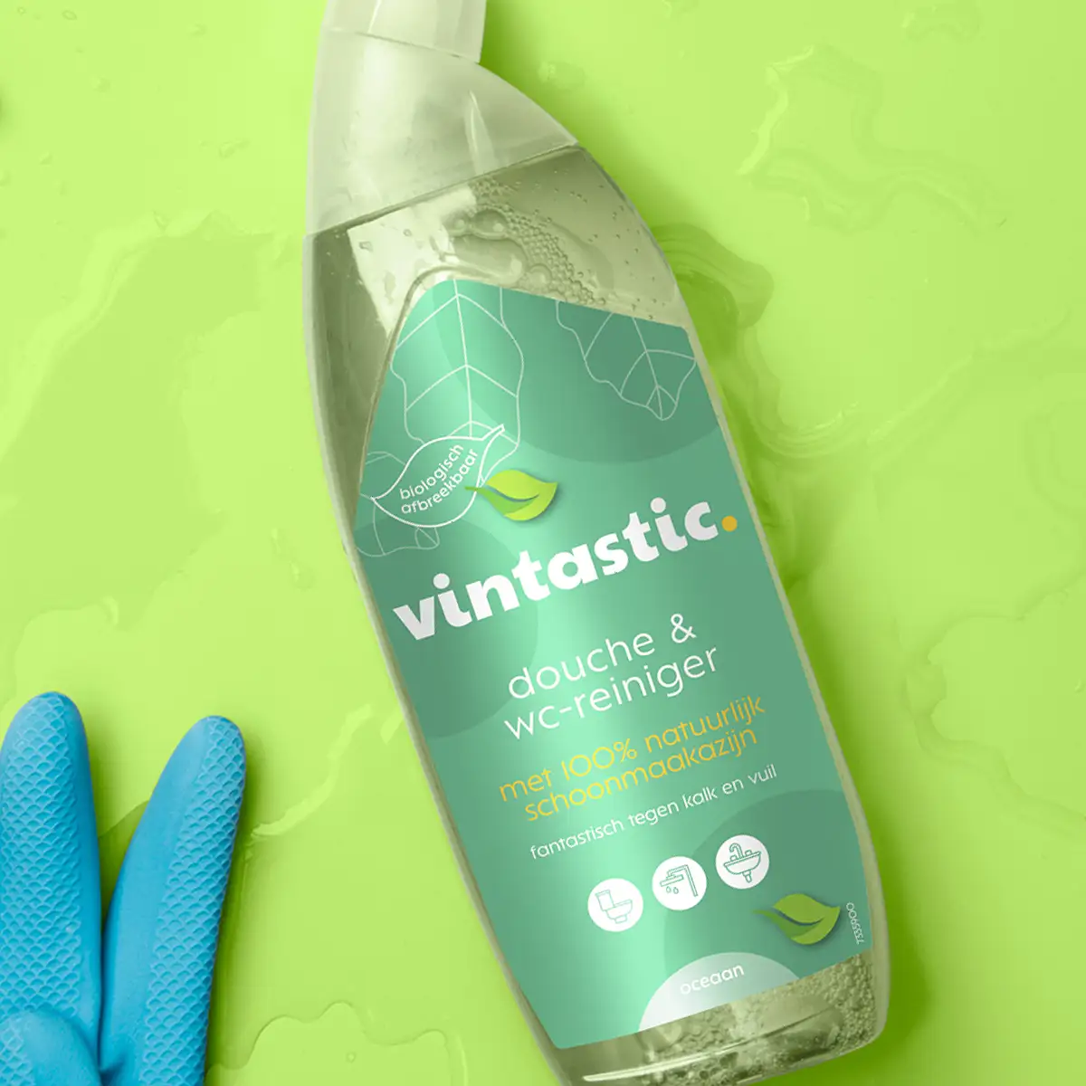 Verwijder moeiteloos kalkaanslag met Vintastic Douche en WC-reiniger 750ml. Krachtige gel voor stralend schoon sanitair. Bestel nu voor een fris resultaat!