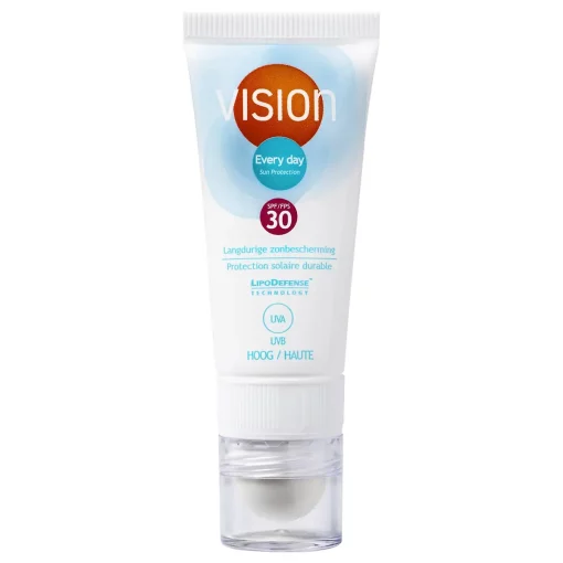 Vision Ski en Sport SPF30 20ml biedt langdurige UVA/UVB-bescherming voor huid en lippen. Water- en zweetbestendig, ideaal voor sport en wintersport!