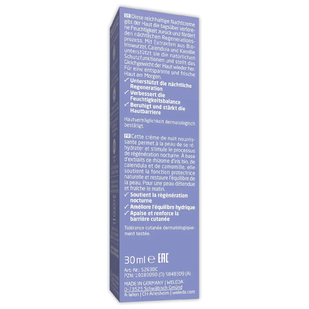 Ontdek Weleda Iris Nachtcrème: hydrateert en kalmeert je huid ’s nachts met 100% natuurlijke ingrediënten. Word wakker met een frisse, ontspannen huid.