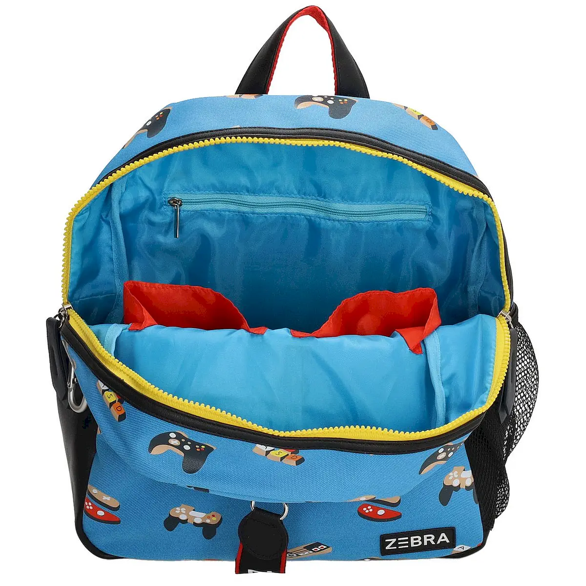 Deze stoere Zebra Trends Boys Rugzak Aquablauw met gameprint heeft een ruim hoofdvak, verstelbare schouderbanden en een zijvak voor een drinkfles. Perfect voor school!