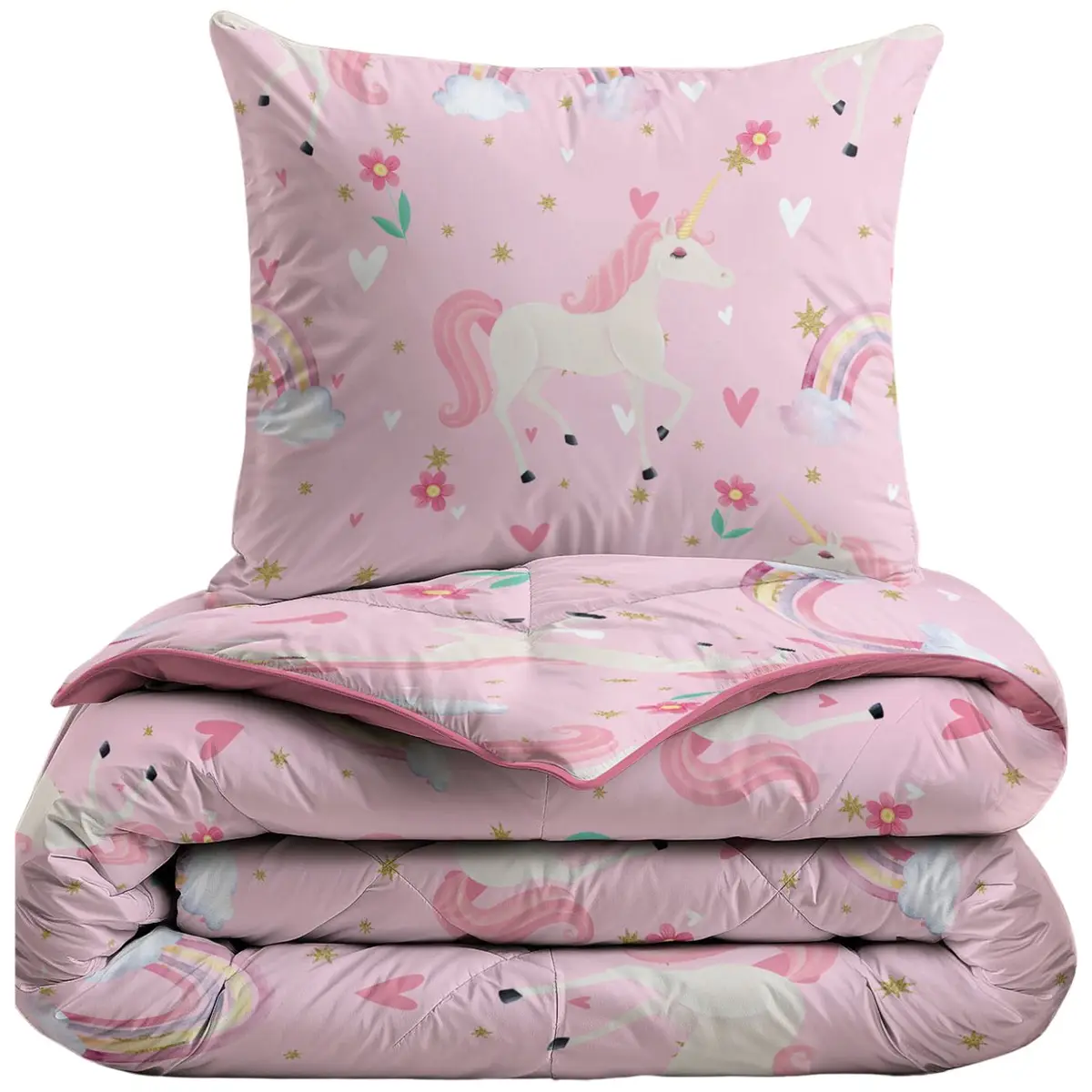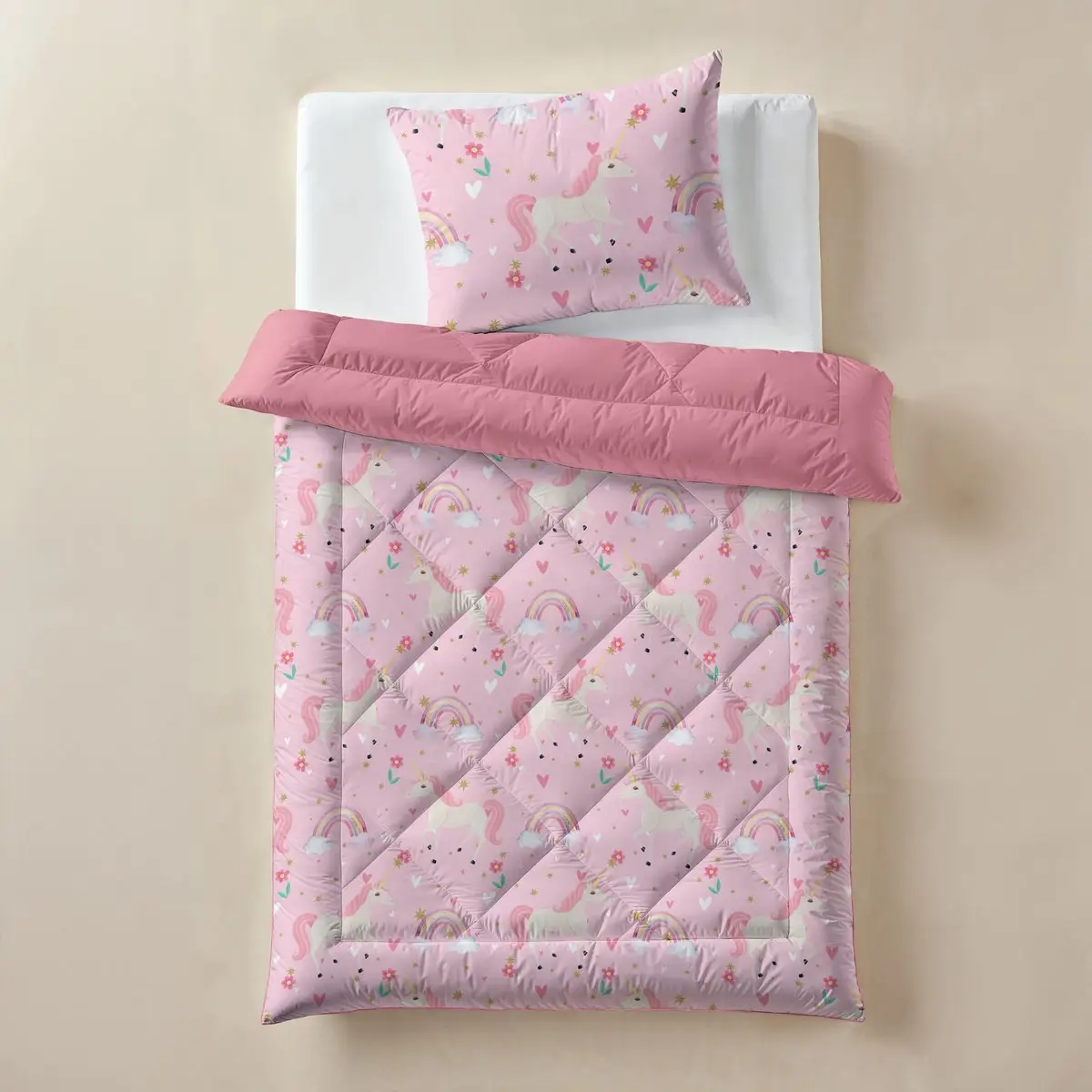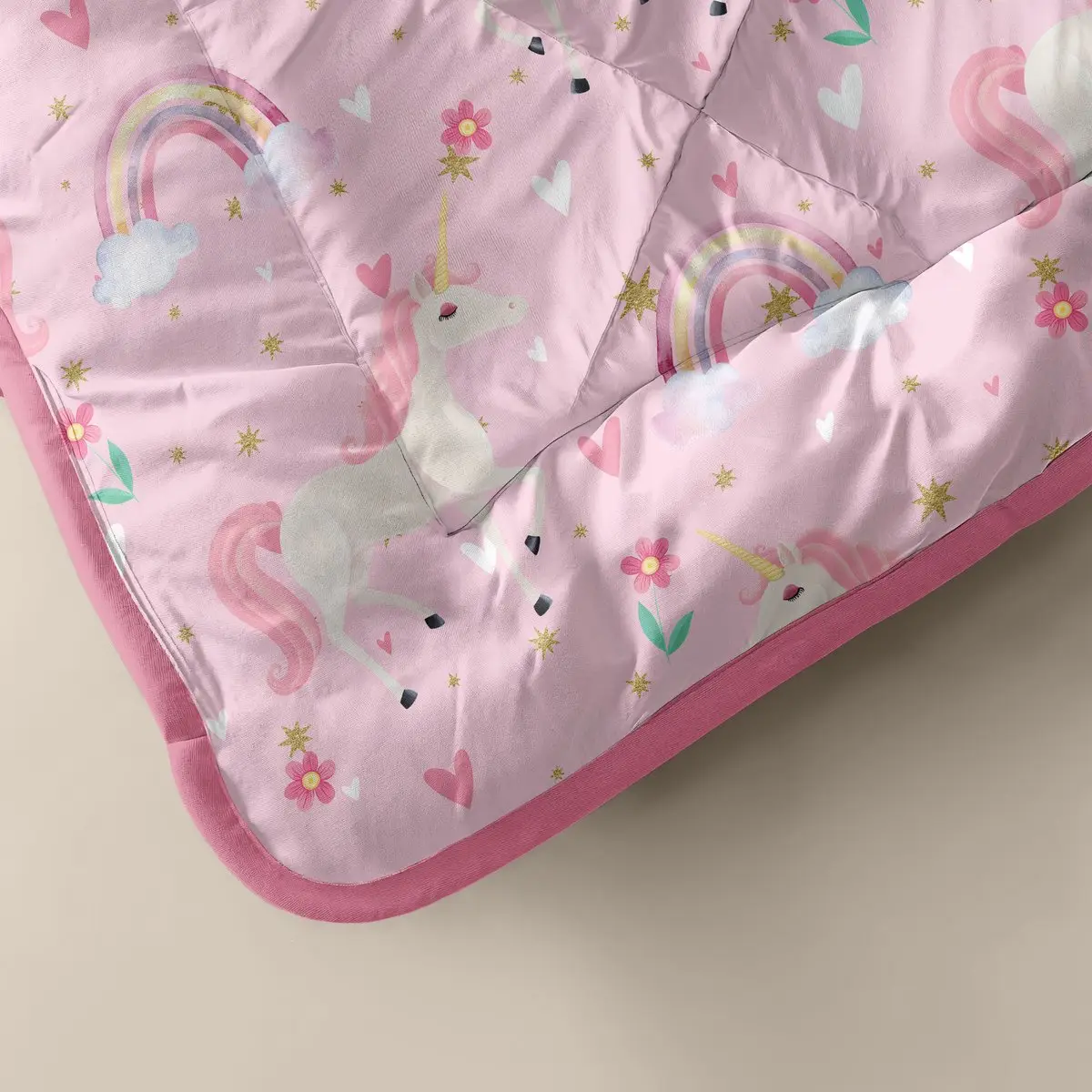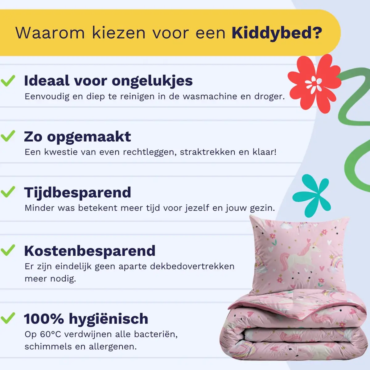 Ontdek het Zelesta Kiddybed Rainbow Unicorn 140x200cm: vrolijk, wasbaar en hypoallergeen kinderdekbed. Hoesloos gemak, 100% hygiënisch en ideaal voor elk seizoen!